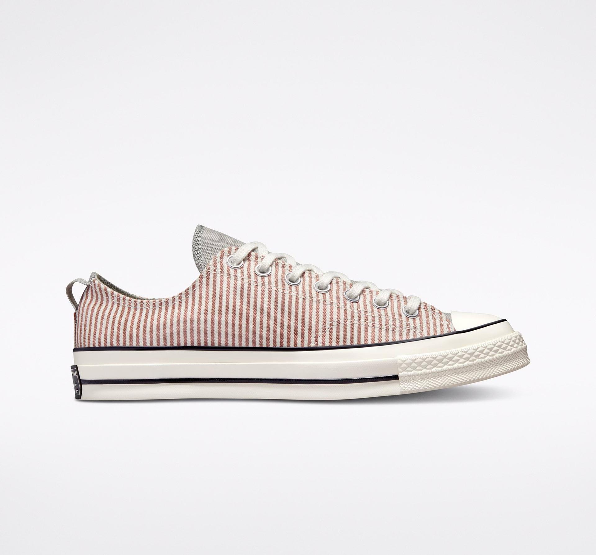 Toto léto vracíme Chuck 70 zpět ke kořenům s tradičními tkaninami a klasickými barvami, které ji svlékají do jejího ikonického základu. Díky svršku z 50% recyklované bavlněné příze v neutrálních zemitých tónech myslí tato Chuck 70 na planetu spolu se 100% recyklovaným polyesterovým poutkem na patě pro dotek pracovního oděvu. S lakovanou egretovou mezipodešví pro milovaný vzhled. Stélka OrthoLite pomáhá udržet botu pohodlnou pro celodenní nošení.