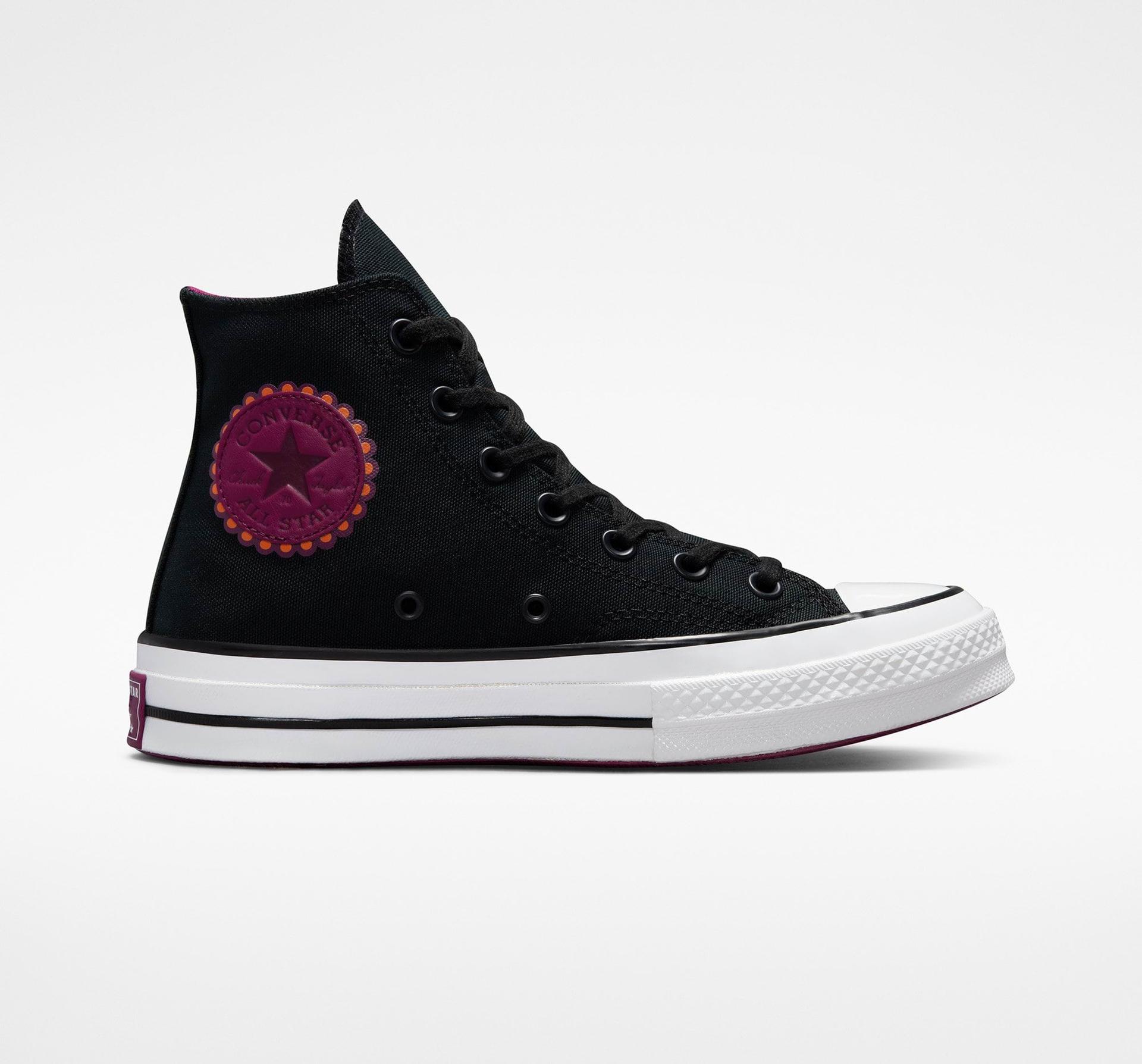 The Chuck 70 is adorned with Day-of-the-Dead symbols, including floral