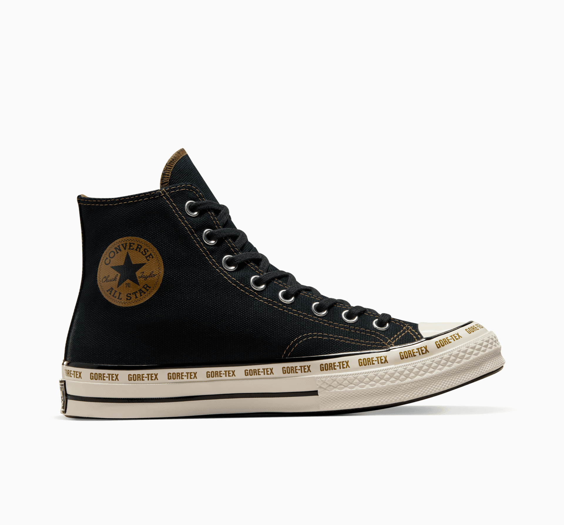 Na ranní procházky oroseným parkem nebo odpolední procházky, když mrholí, můžete obout tyhle prémiové kotníkové tenisky. Tyhle tenisky Chuck 70 do nepříznivého počasí, jsme vybavili materiálem GORE-TEX, který pomáhá chránit před deštěm, a ponechali jsme známý styl modelu Chuck 70. Proto jsou ideálním kouskem do chladného počasí.