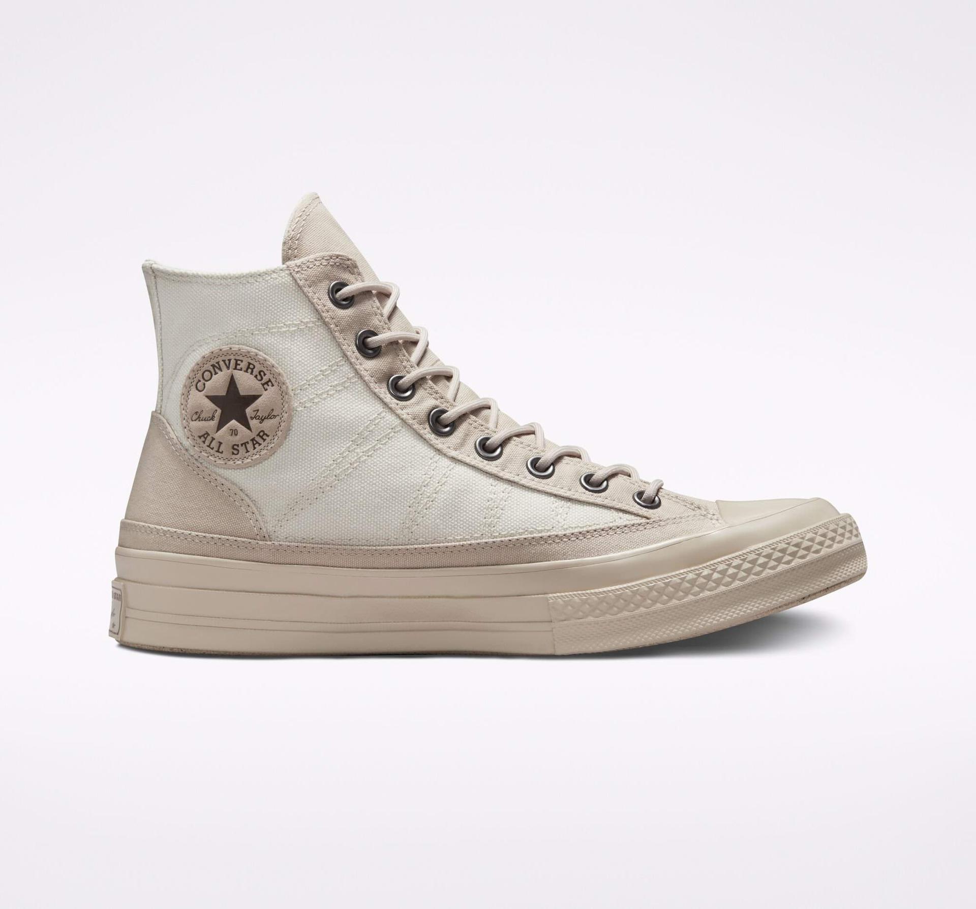 Známý styl s nádechem dobrodružství – to jsou kotníkové tenisky Chuck 70 GORE-TEX, ve kterých se snoubí prvky outdoorové obuvi s původním designem ze 70. let. Provedení kolekce Counter Climate proti povětrnostním vlivům mají vodoodpudivý plátěný svršek s 50% podílem recyklovaných materiálů, gumovou podrážku s 36% podílem recyklovaných materiálů ze zbytků z výroby obuvi a navíc voděodolnou podšívku GORE-TEX, díky níž zůstanou nohy v suchu. Plátěné překryvy inspirované pohorkami a navoskované tkaničky připomínají horské túry.