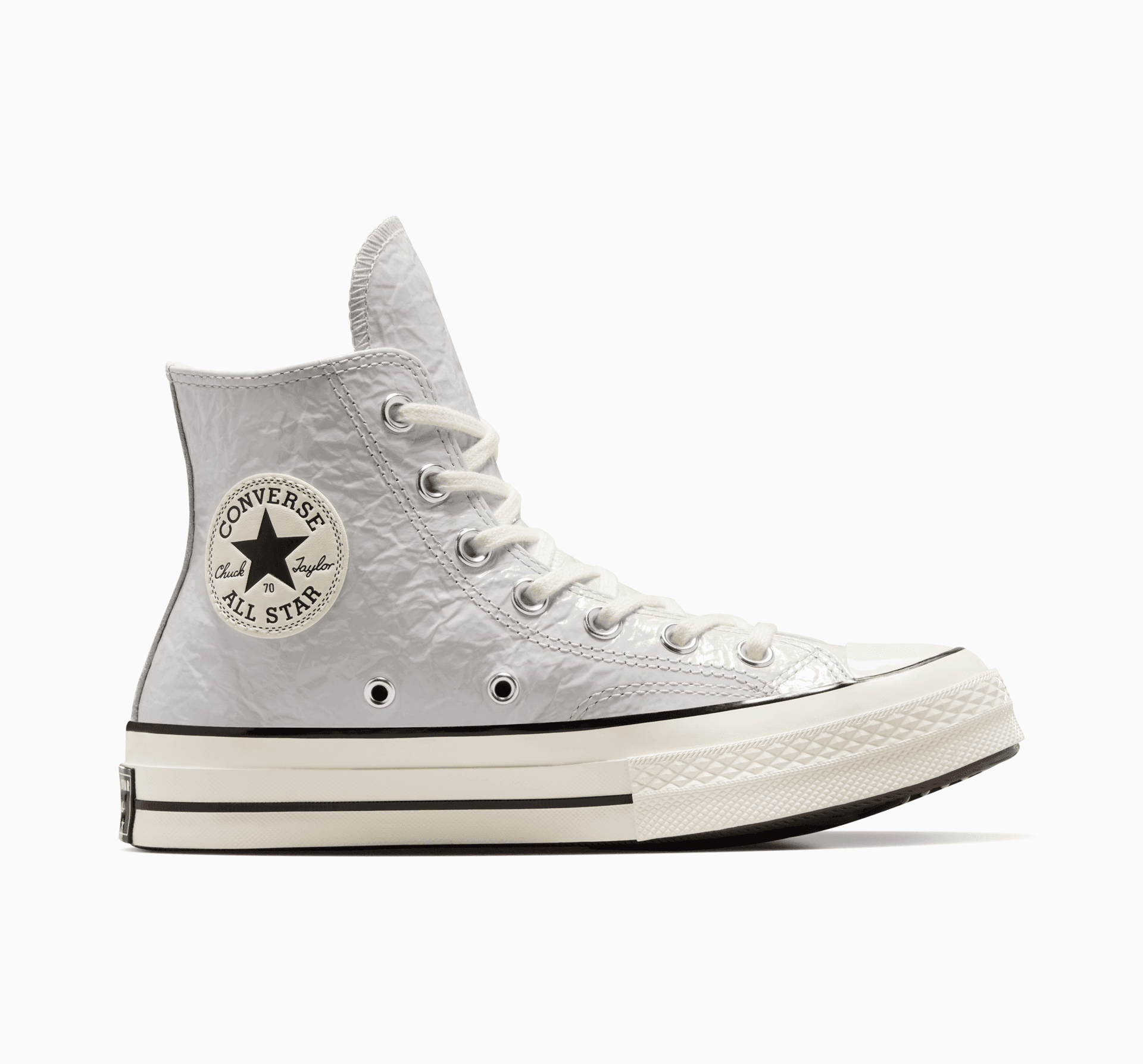 Svršek z vysoce lesklé zvrásněné kůže mění klasický styl modelu Chuck 70