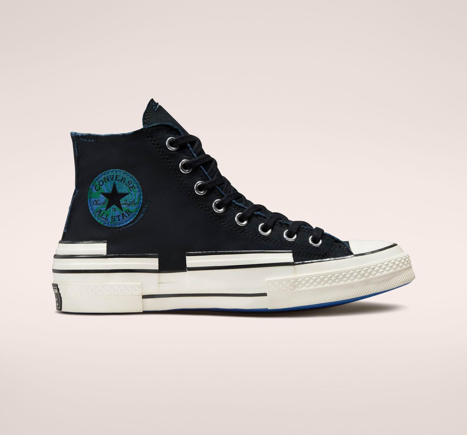 V roce 1970 se tenisky Chuck Taylor All Star staly jedním z nejlepších párů basketbalových tenisek na světě. Klasické tenisky ze 70. let jsme posunuli daleko za jejich hranice a vdechli jim něco z taneční kultury 90. let. Potrhaný svršek s 50% podílem recyklované bavlny zdobí psychedelický potisk. Trojitý pruh dodává teniskám ještě zdeformovanější vzhled. Model doplňují klasické prvky tenisek Chuck 70, jako jsou lesklá mezipodrážka a prémiové bavlněné tkaničky.