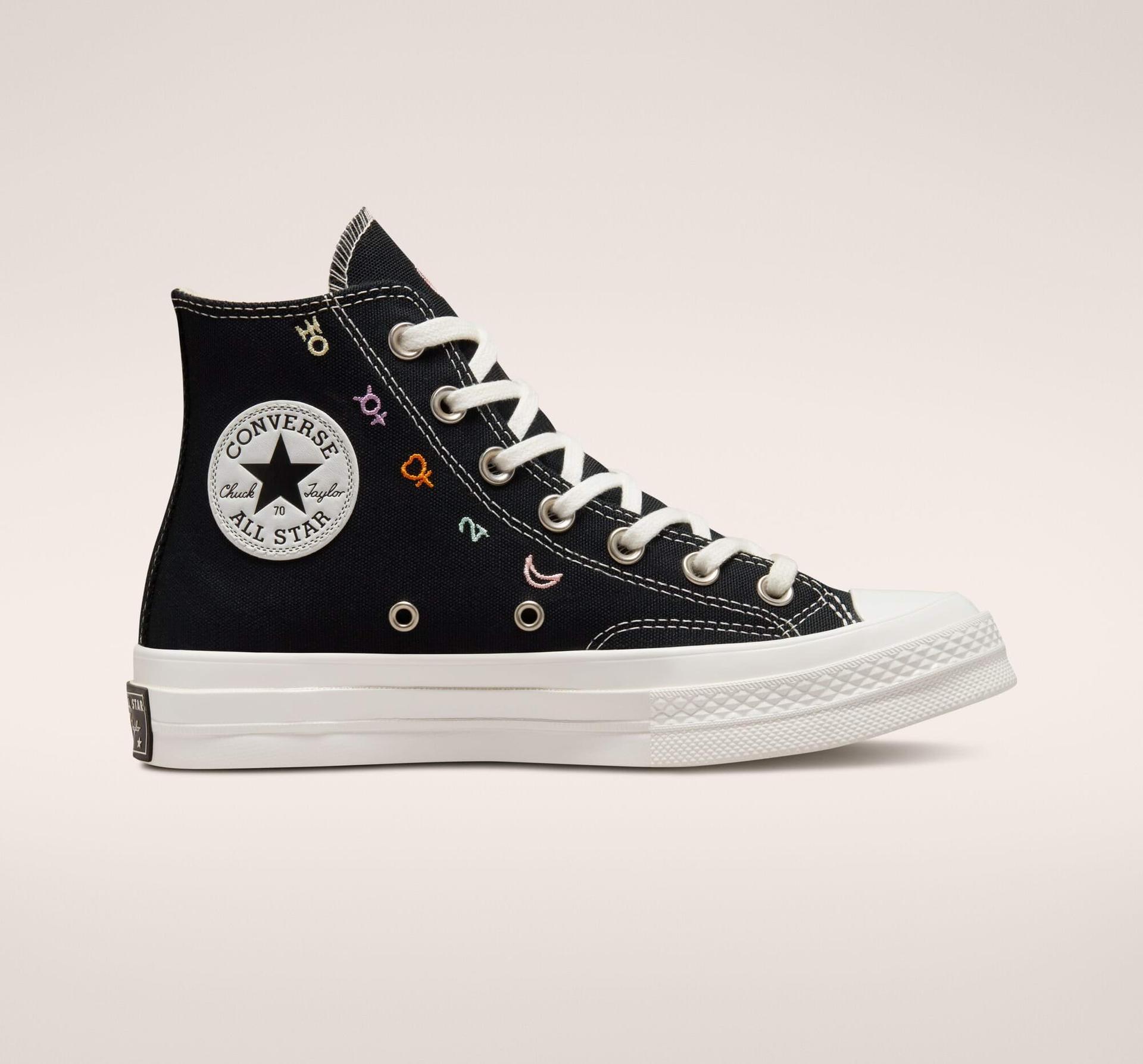 Tyto prémiové tenisky Chuck 70 inspirované vesmírem kombinují ikonické prvky s prošívanými planetárními symboly. Skrytý potisk na rubové straně jazyka symbolizuje energii krystalů, která učiní z obyčejného outfitu kouzelný. Tenisky s průhlednou gumovou podrážkou a planetárním potiskem souzní s vesmírem.