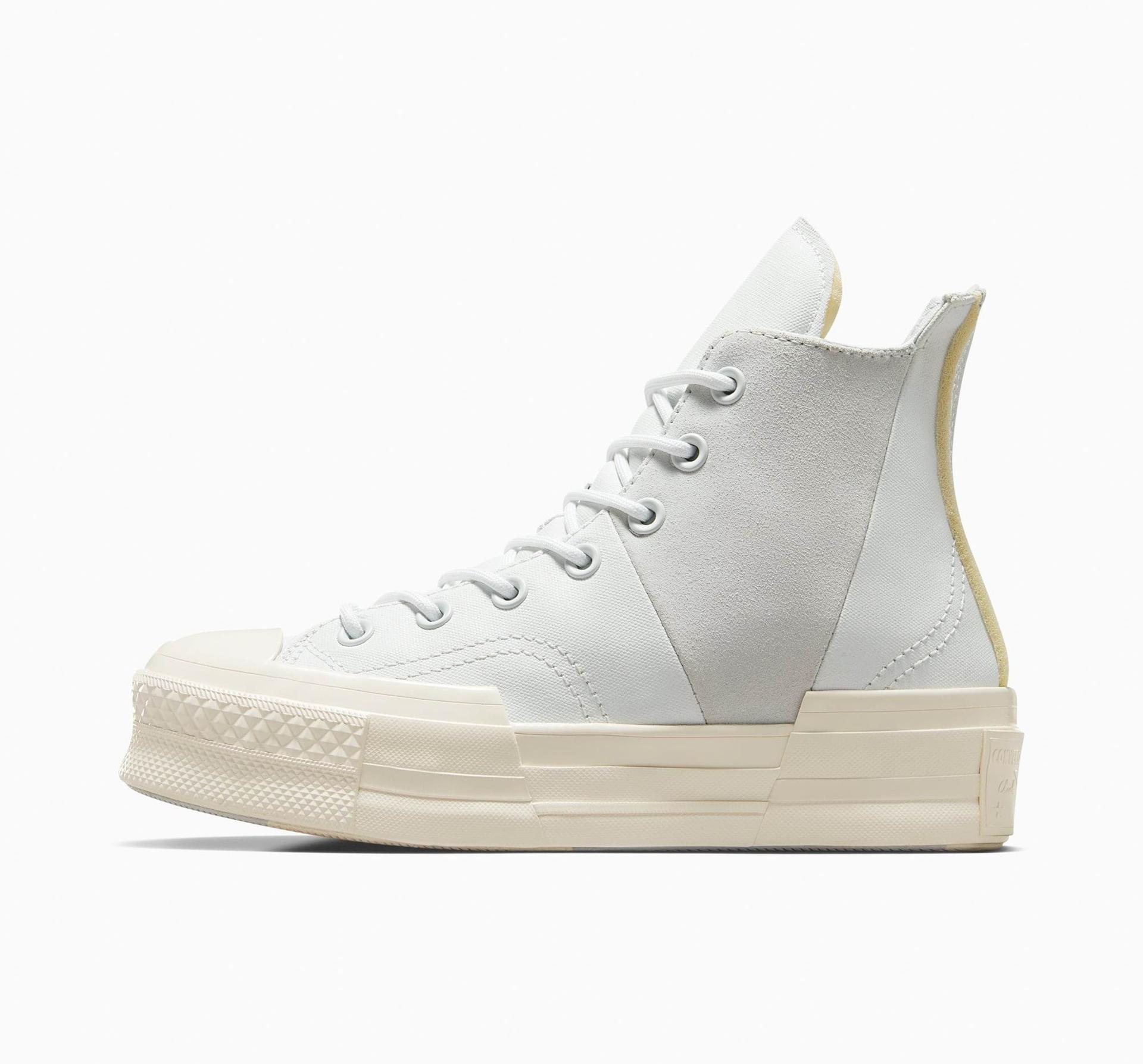 Nečekaná úprava nehynoucí klasiky v teniskách Chuck 70 Plus kombinuje ikonické rysy s designem, který jde budoucnosti naproti. Kombinace plátěné látky a semiše se snoubí s výraznými asymetrickými pruhy a vytváří tak působivý kousek. Verze by nebyla kompletní bez přiznané pěnové výplně v jazyku a patní části. S těmihle teniskami bude každý outfit působit prakticky.