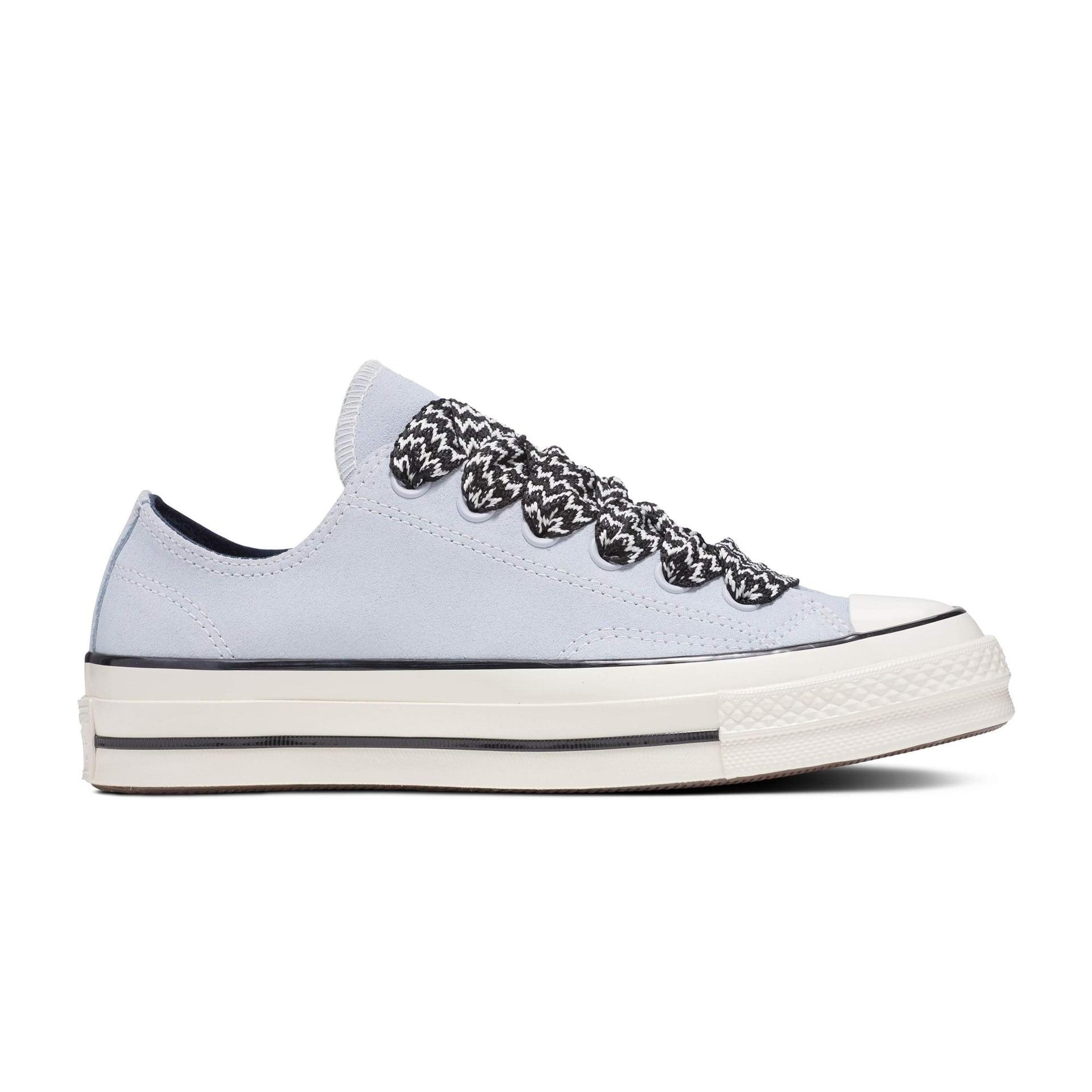 Ikonický styl tenisek Chuck 70 v nové verzi nesoucí nostalgii devadesátých let s odolným semišem a výraznými, velkými tkaničkami. Retro sportovně laděné barvy a lehká pěna dotváří „nadýchaný“ vzhled z období přelomu milénia.