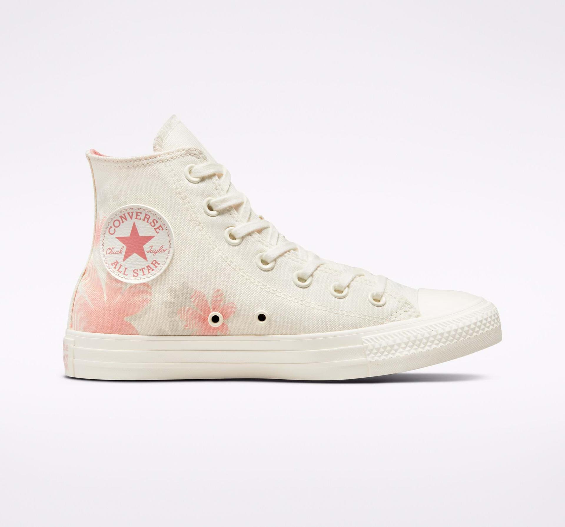 Tenisky Chuck inspirované pouštní krajinou se nebojí zkombinovat jemné neutrální barvy s květinovým potiskem ve vzoru heatwave. Tkaničky a guma ve stejném barevném tónu dodávají modelu eleganci a nechávají vyniknout přírodní barvy podšívky.