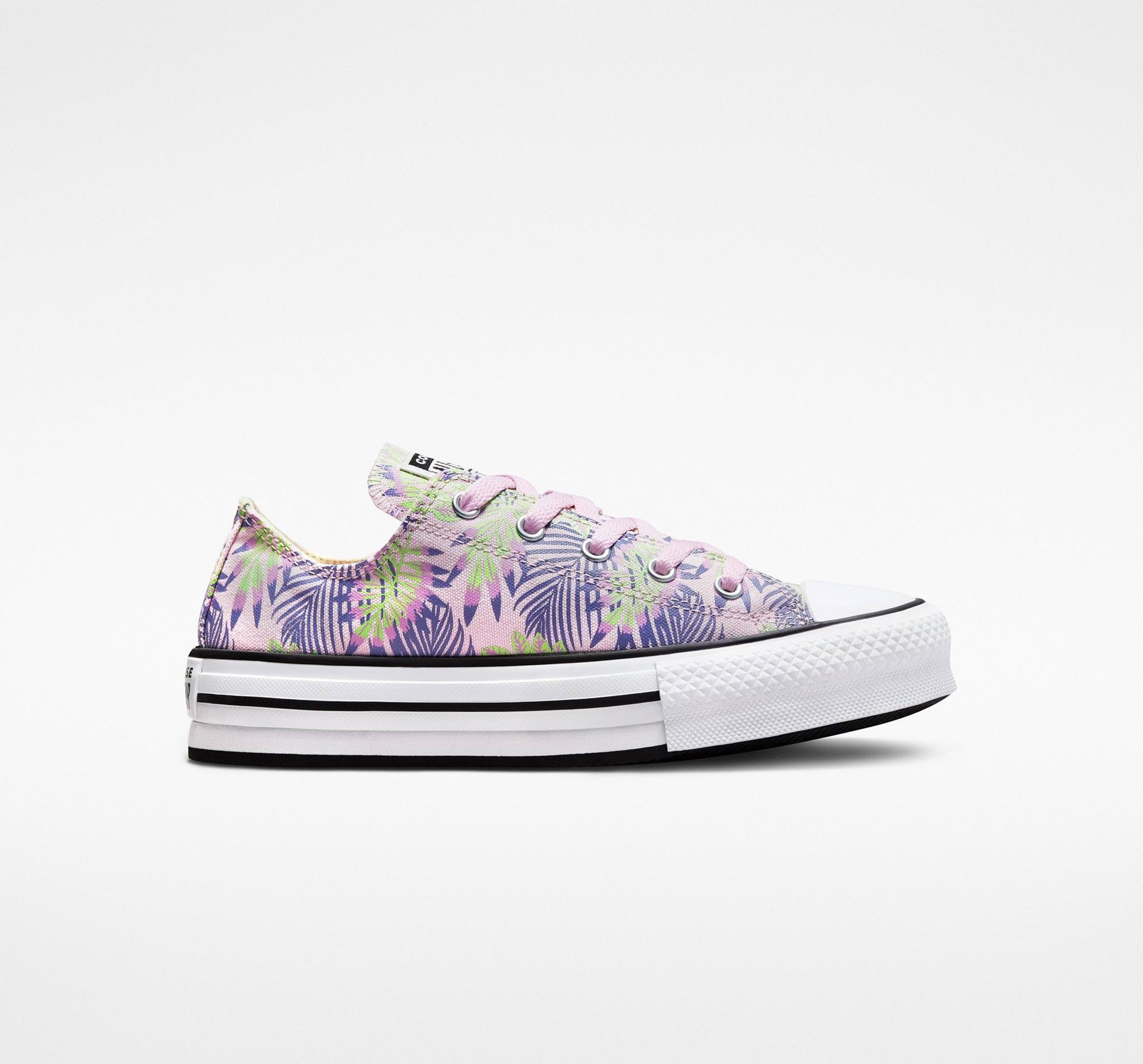 Ikonický low top je proměněný pro děti, s měkčenými podšívkami, stehy a švy a navíc zvednutou podrážkou, která jim poskytuje ultimátní platformu pro sebevyjádření. Zářivé listy a rostliny v popové barvě přinášejí svou lásku k přírodě na klasické plátno. Vzhled je zakončen klasikami Chuck Taylor All Star, jako je gumová obsázka, pruhy mezipodešve a podrážka s diamantovým vzorem.