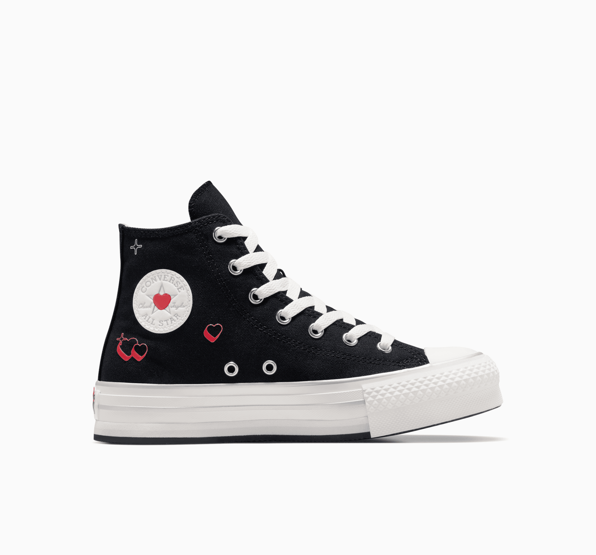 Růže jsou rudé, fialky zas modré. Tyhle platformy Chuck budou vaše oblíbené. Srdíčka a metalické prvky jsou vyznáním lásky k trendům éry Y2K. Proč je mít ještě radši? Přece kvůli nášivce na kotníku se srdíčkem.
