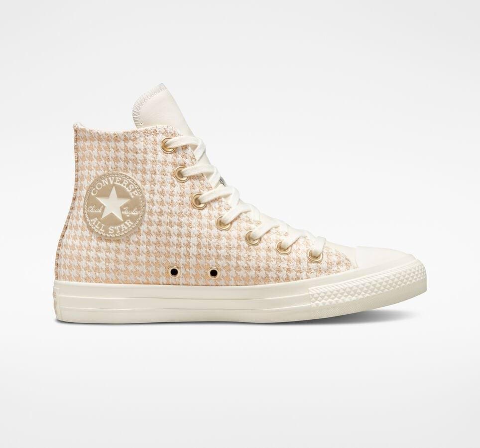 Některé věci nikdy nevyjdou z módy, třeba potisk se vzorem kohoutí stopy, třpytivé párty střihy, a nový pár tenisek Chuck. Tyhle tenisky na platformě kombinují všechny tři prvky, aby pozvedly váš vzhled po celou sváteční dobu i po ní.