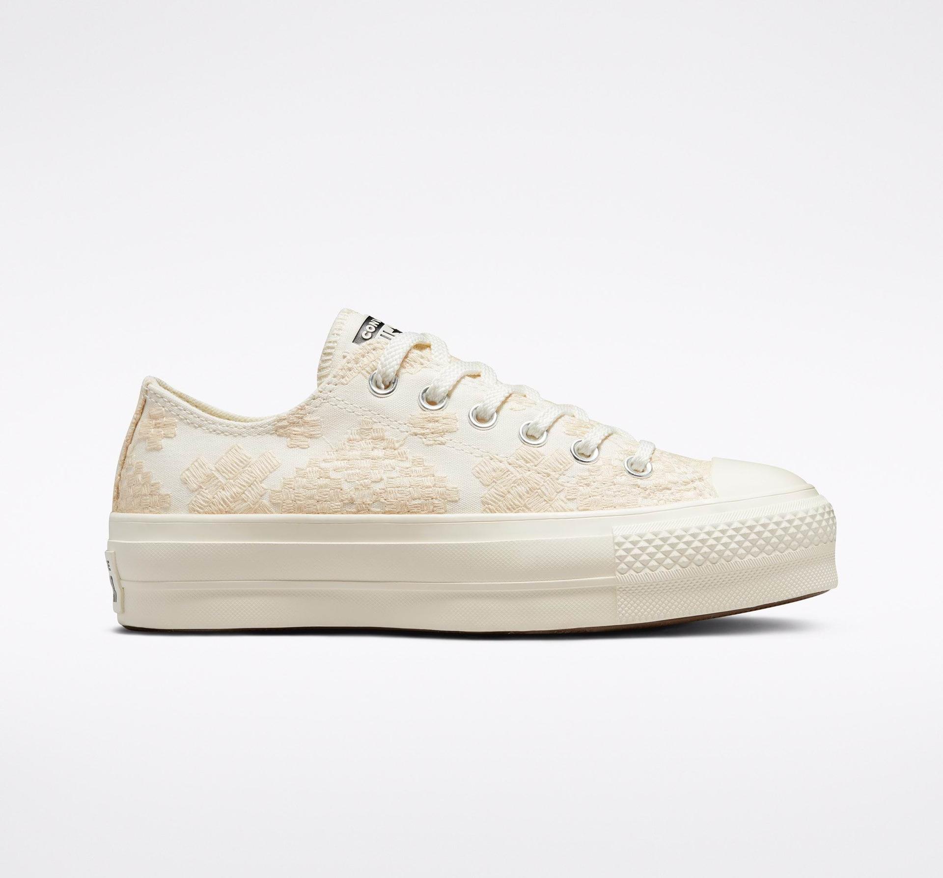 Oslavte sezónu s čerstvým párem platformových Chucks. Síťovinou podšitý žakár a důmyslné, tónové vyšívání podtrhnou jakýkoli outfit, přičemž zůstanou prodyšné v teplých letních dnech. Jako vždy, ikonické designové prvky jako gumová špička a podrážka s diamantovým vzorcem zůstavají zakořeněné v autentickém stylu Chuck Taylor.