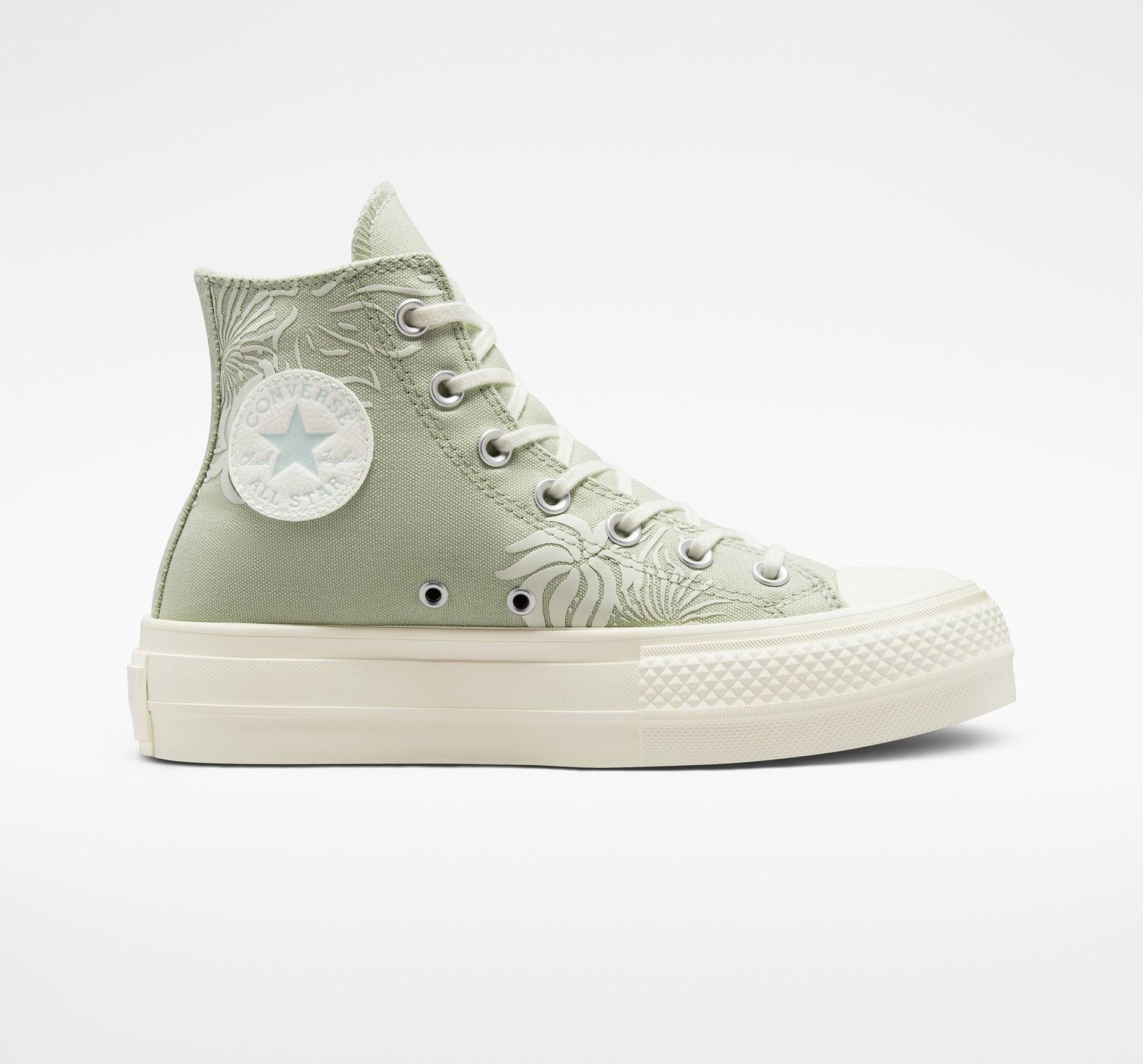 Oblíbené platformy se akorát včas vyšvihly do teplého a slunečného jarního počasí. Nádherné barvy a abstraktní květinový potisk na plátěném svršku dodávají platformám Chuck jarní nádech. Jednobarevný jazyk a klasická gumová základna jsou v ikonickém stylu Chuck Taylor.