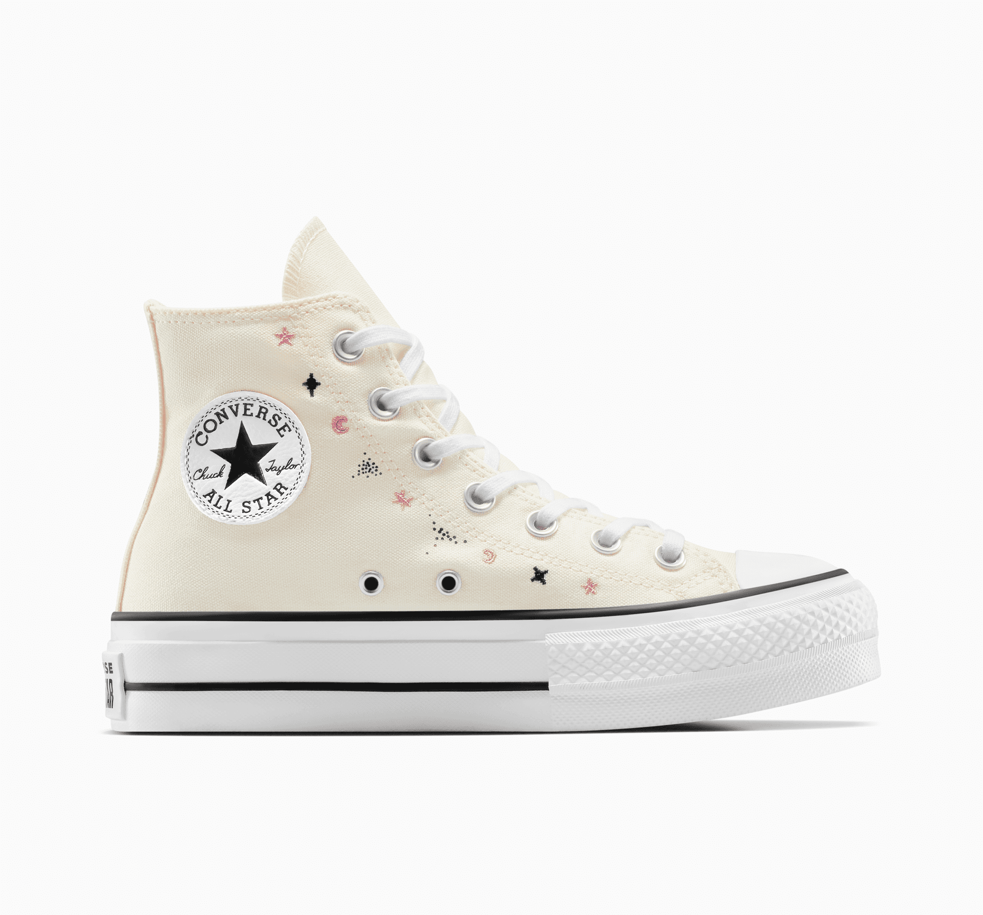 Tyhle platformy Chuck jsou inspirované astrologií a jejich oblíbený nadčasový vzhled zdobí nebeské výšivky.