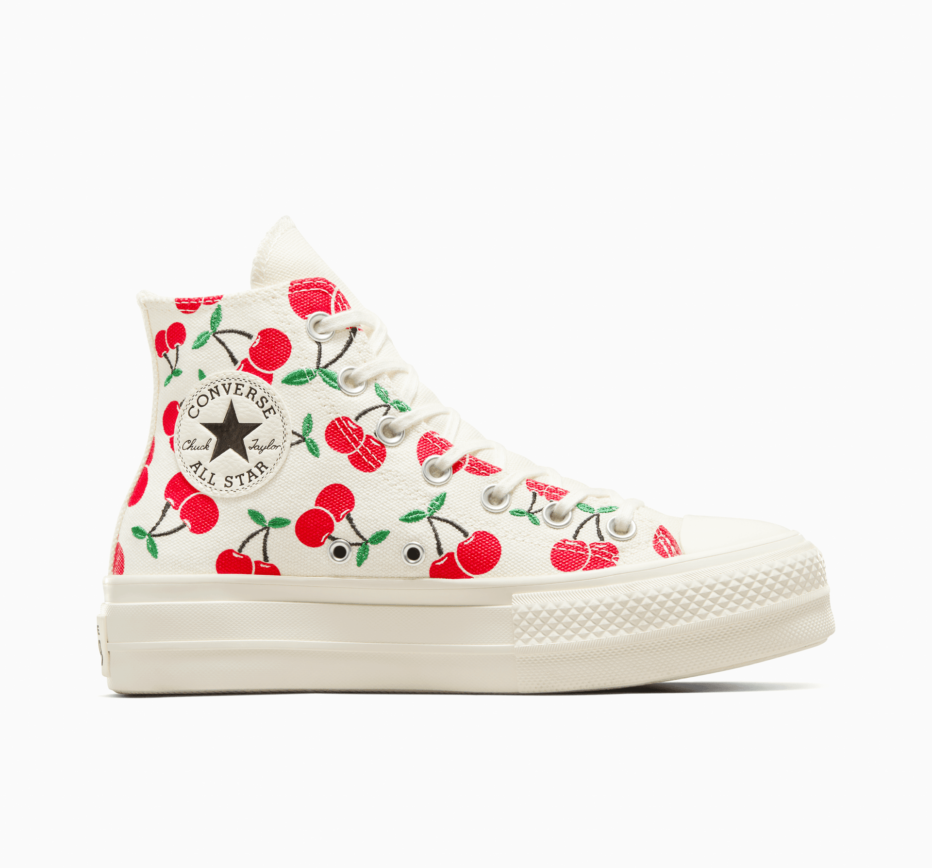 Jarní platformy, které přinesou do vašeho stylu jarní svěžest. Celoplošný sítotiskový potisk třešní je oslavou aktuálního ročního období. Váš styl navíc zůstane při zemi díky nezaměnitelným designovým prvkům tenisek Chuck Taylor. Uzrají na slunci, stvořené ve stínu.