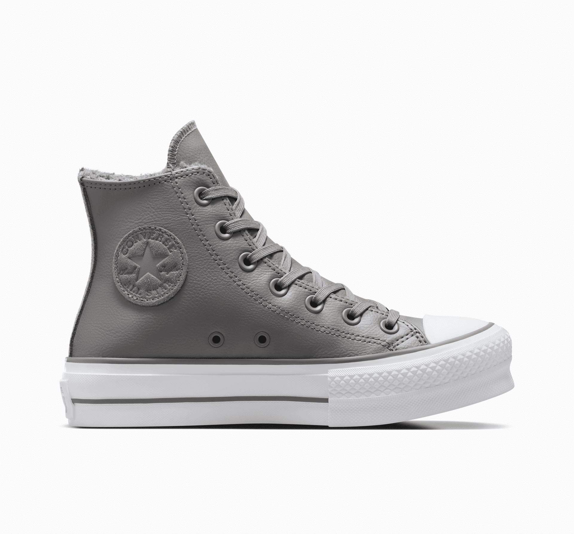 Když udeří zima, tyhle platformy zahřejí. Koženka lemovaná kožešinou sherpa udrží teplo uvnitř a nezaměnitelný styl tenisek Chuck Taylor vás udrží ve hře. Neutrální barvy se dokonale hodí ke všemu, co máte v zimním šatníku.