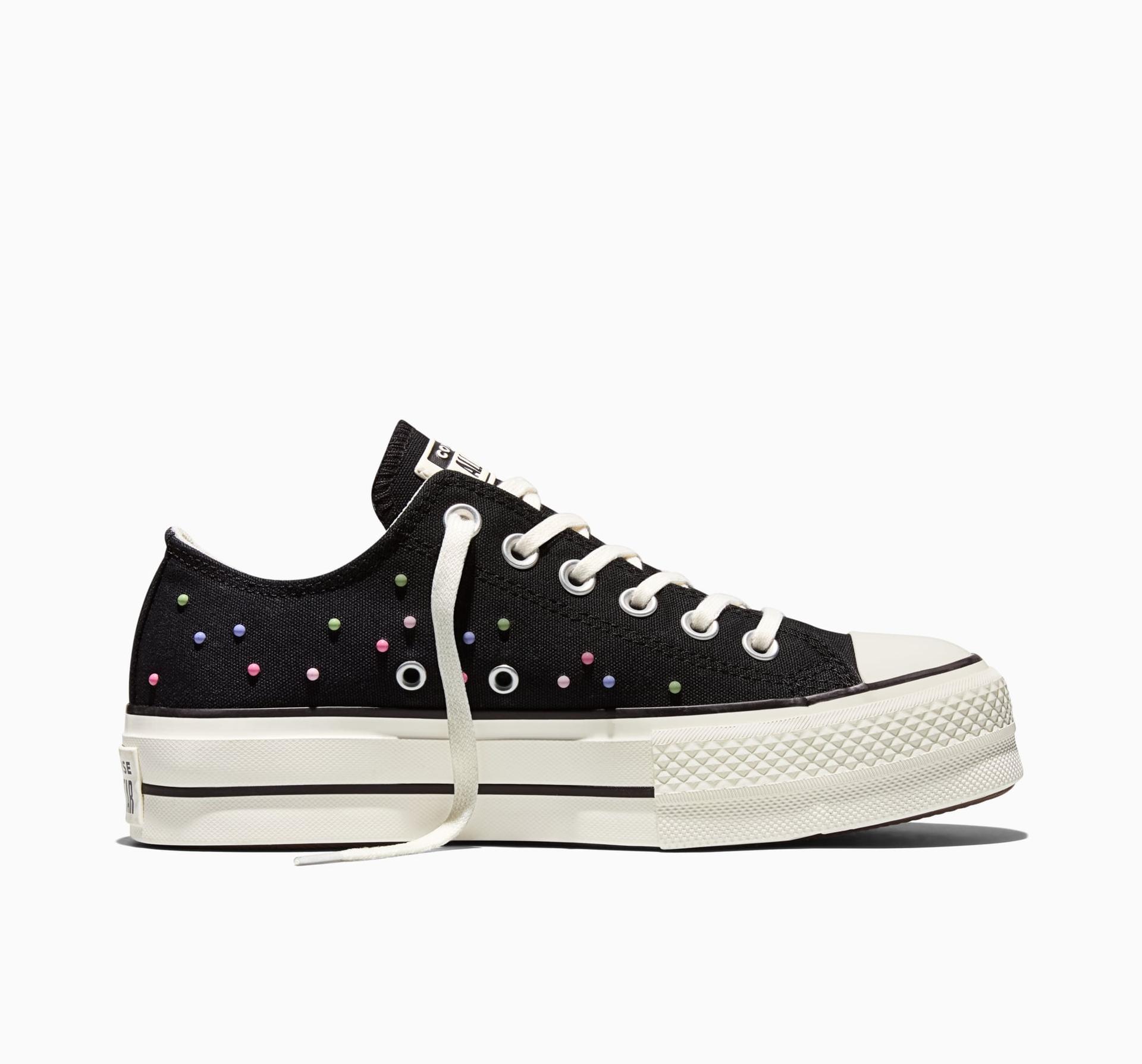 Dost ležérní na běžné nošení. Dost efektní na večerní zábavu. Tyhle platformy Chuck s cvoky jsou naprosto stylové. Vyvýšená verze oblíbených tenisek, to jsou platformy Chuck Taylor All Star Lift.