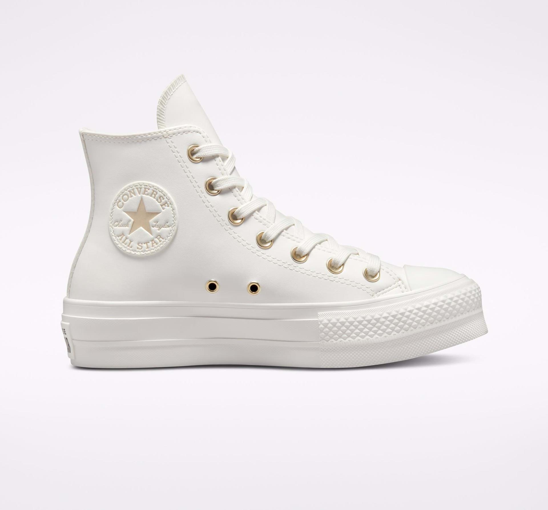 Platformy Chuck vstupují do sezóny s luxusními detaily, díky kterým váš styl nezapadne. Protože platformy mají svršek z uhlazené koženky a čistě bílou mezipodrážku, budou se hodit ke všemu. Nenápadné zlaté detaily dodají outfitu šmrnc.