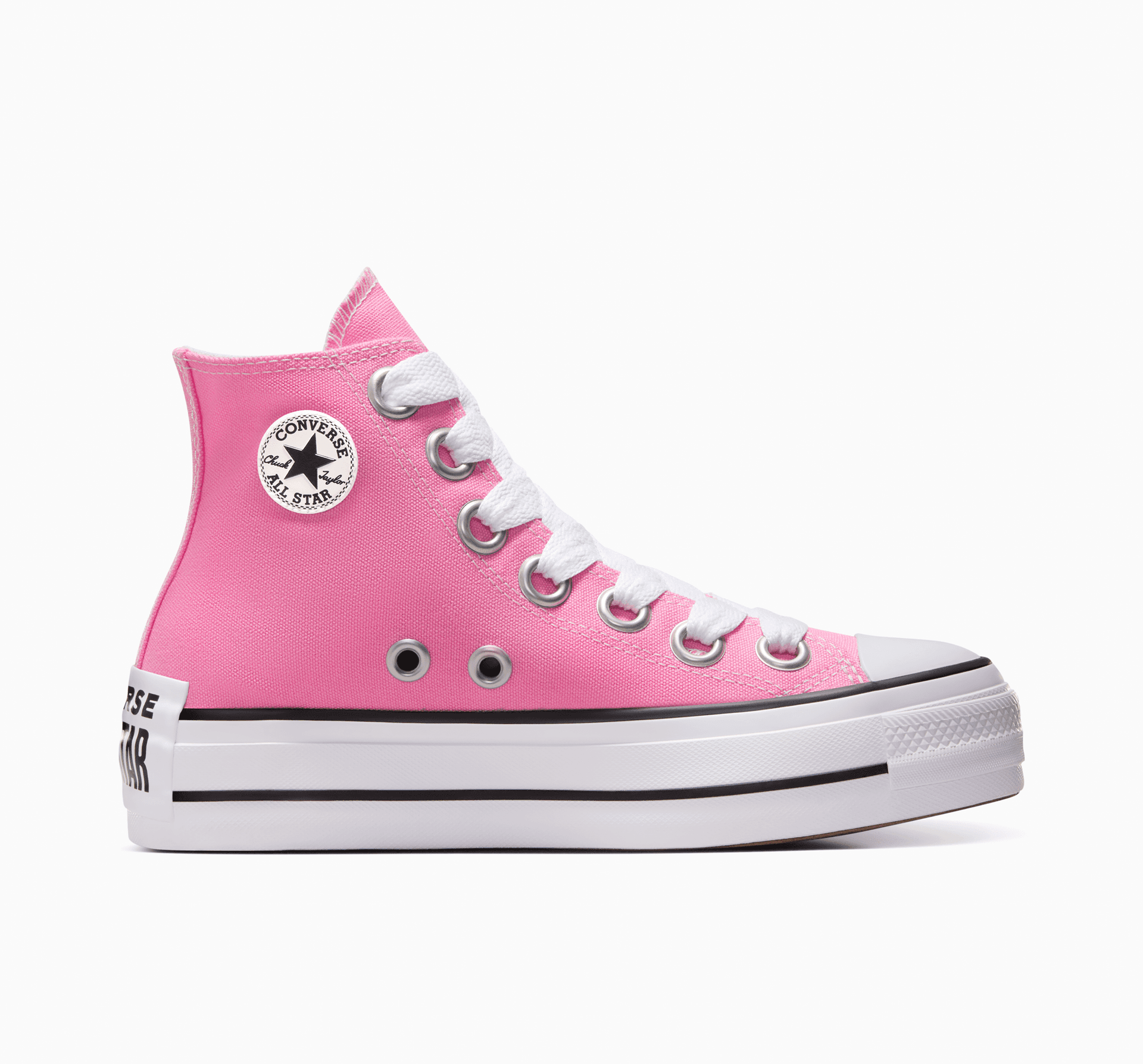 Na verzi oblíbených platforem Chuck Taylor All Star Lift jsme neočekávaně přidali karikatury nezaměnitelných prvků modelu All Star. Vysoké kotníkové platformy jsme navrhli ve stylu tenisek Chuck, ale ozdobili jsme je velikými i malými pokřiveným detaily, abyste mohli ukázat svou kreativní stránku. Vystřihnete trendy outfit růžový od hlavy až k patě, nebo zůstanete při staré černé.