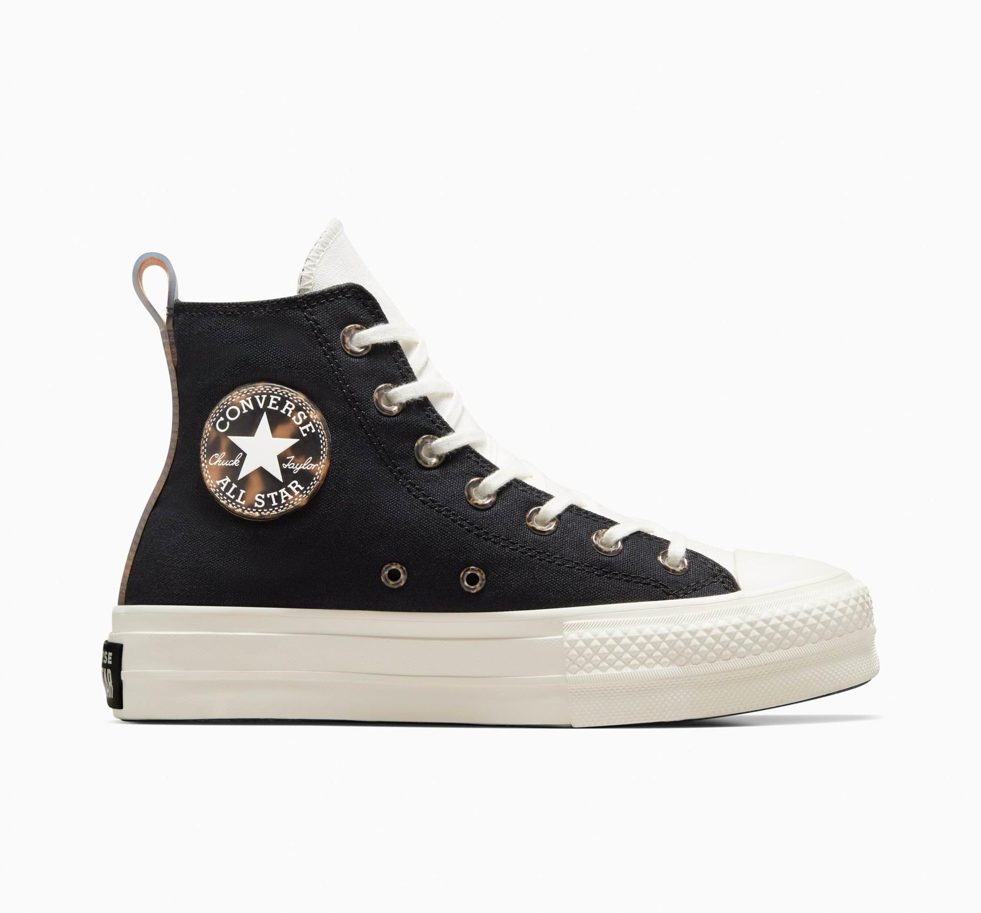 Některé věci nikdy nevyjdou z módy, třeba želvovinový potisk a nový pár platforem Chuck. Proč nemít oboje? Tyhle kotníkové platformy mají detaily s želvovinovým potiskem a působí moderně a nenuceně. Můžete si je vzít k elegantnímu i ležérnímu oblečení. Tyhle tenisky budou vždy zapůsobí.