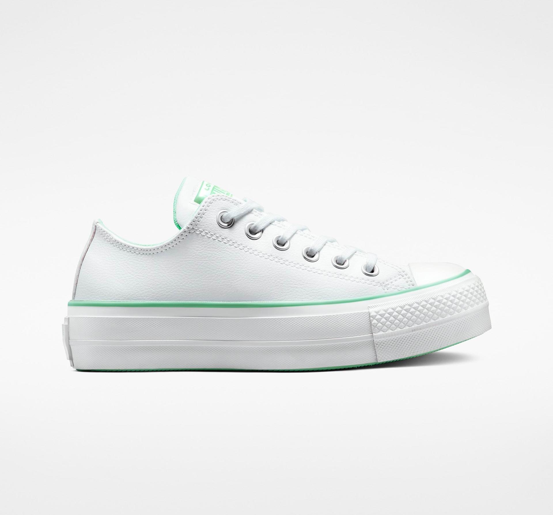 Hrdě vyčnívejte z davu v nejnovějších teniskách Chuck s platformou. Hebká koženka dodává teniskám luxusní nádech. Pomyslnou třešničkou je třpytivé logo na jazyku.