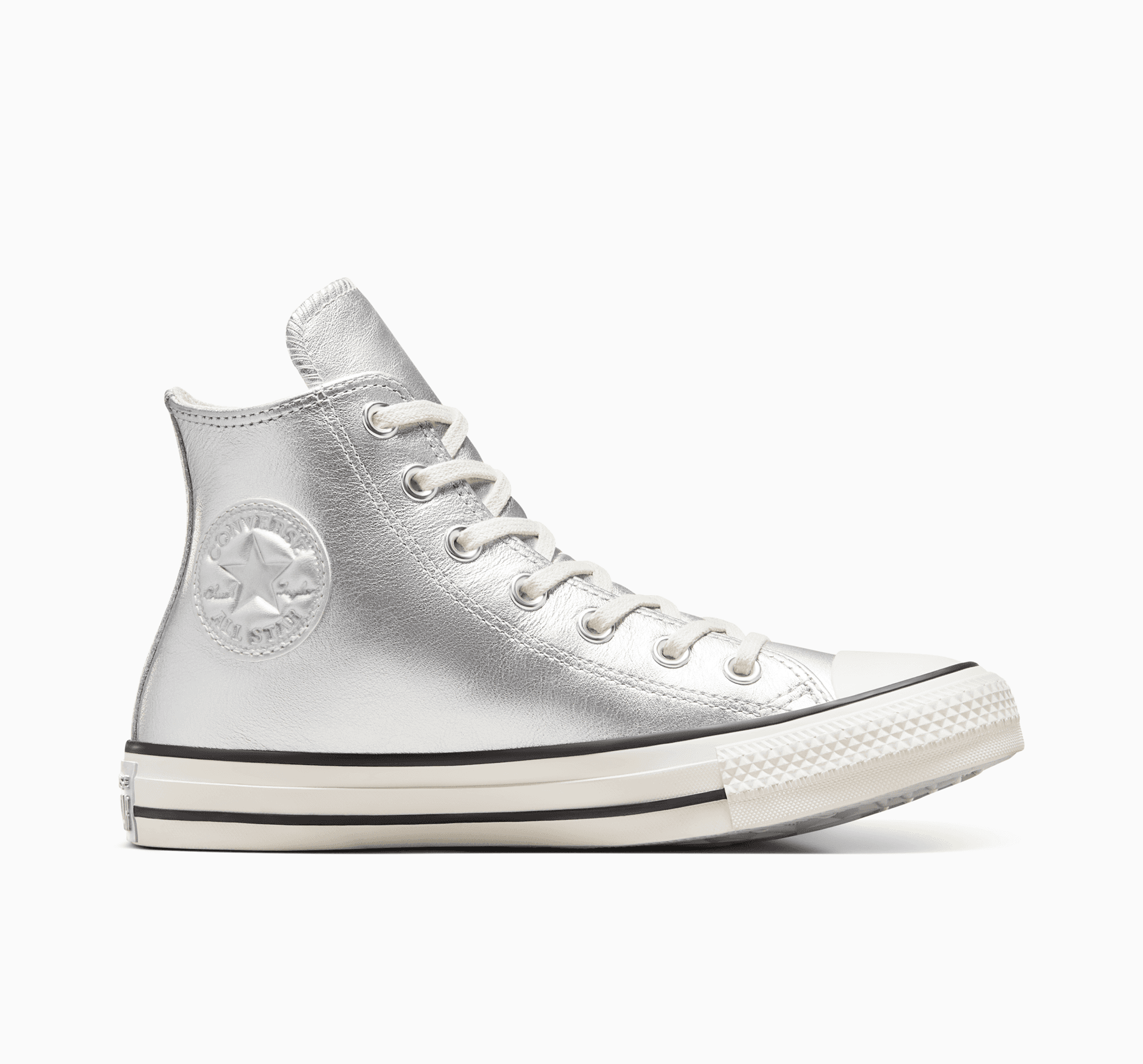Píše se rok 3000 a tenisky Chuck jsou pořád v kurzu. Metalická kůže s vysokým leskem posune váš styl směrem do futuristických sfér, ale klasické detaily All Star ukotví každý krok v současnosti.