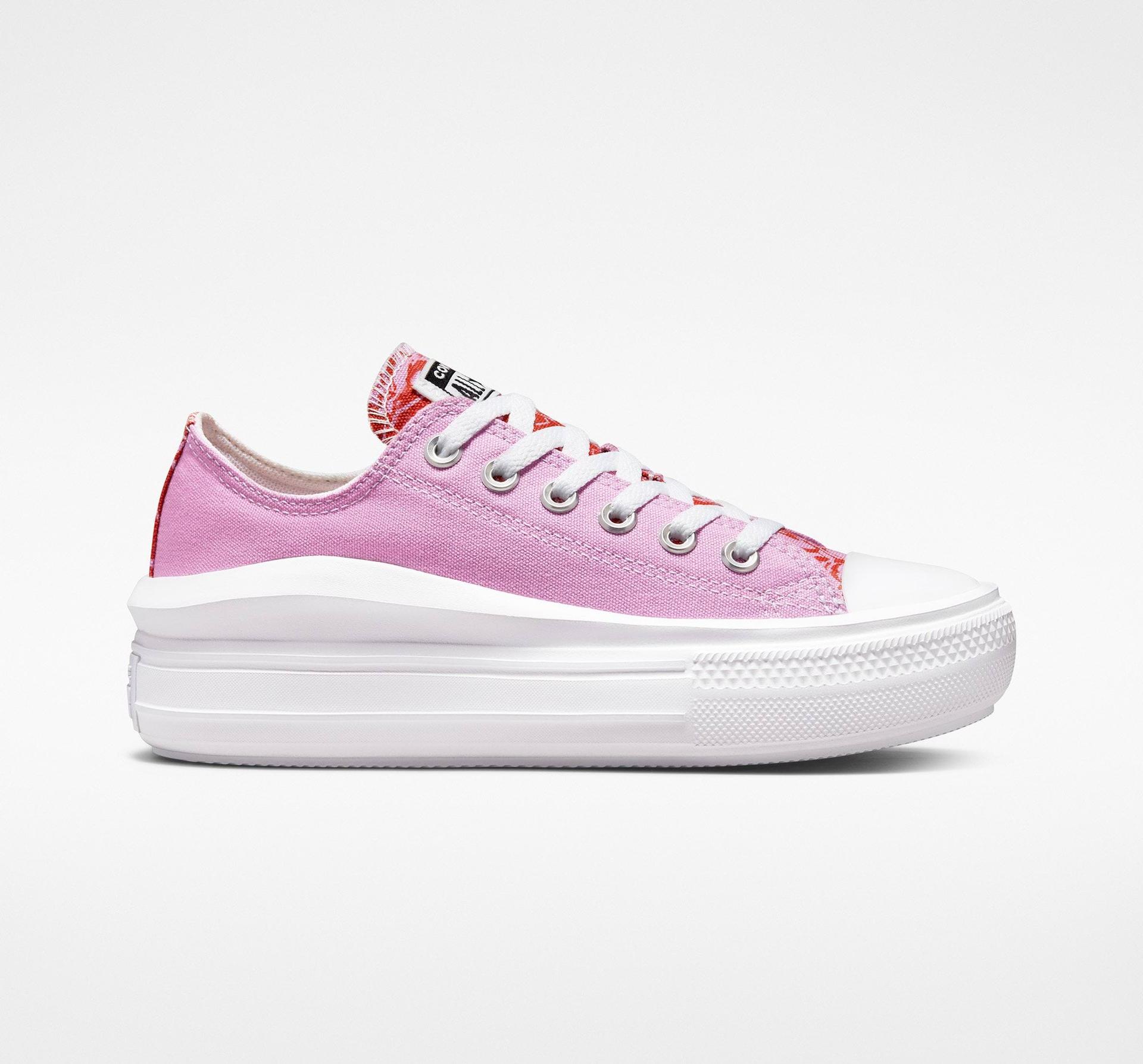 Zmodernizovali jsme naši ikonickou low-topovou siluetu, přidali plynulé, sportem inspirované designové linie a umístili ji do ultralehké EVA podešve, což vám dává Chuck Taylor All Star Move. Svěží tropický potisk se houpe nad jazykem a podpatkem v kontrastu s jasnými letními barvami přes svršek vyrobený z nejméně 50 % recyklovaného bavlněného plátna. S extra pohodlím a výškou. Nic vás nezastaví.