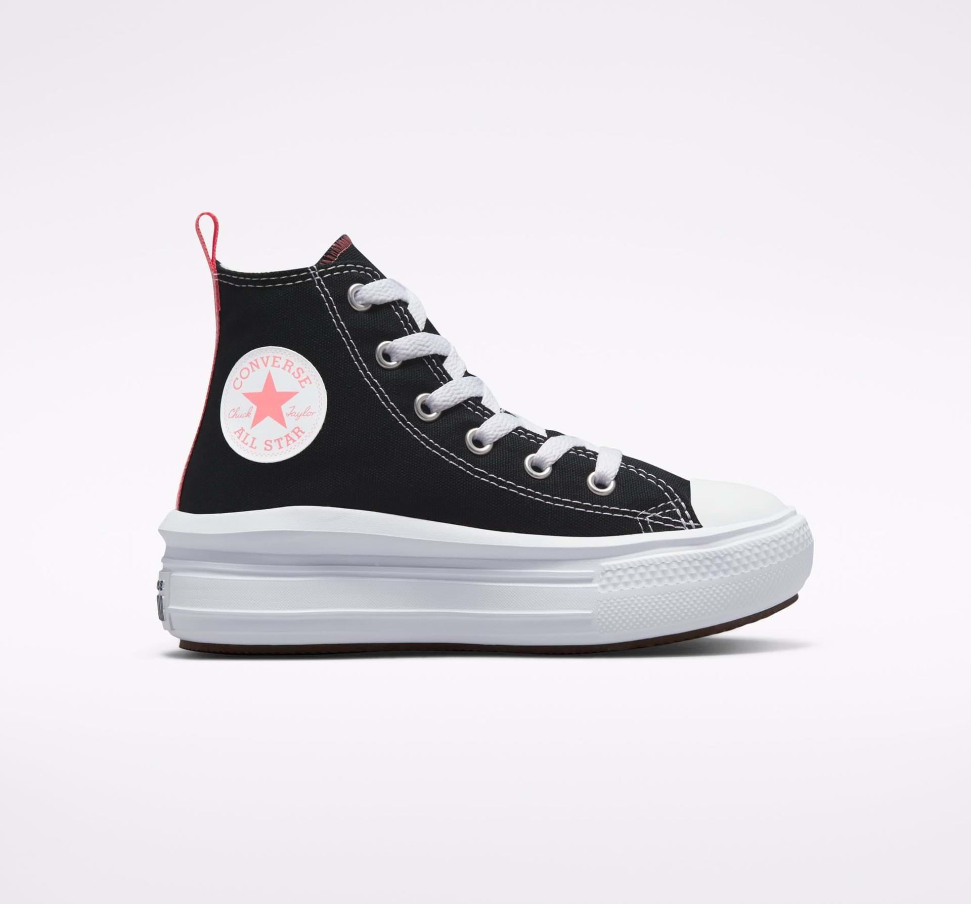 Up the height and the attitude in the new Chuck Taylor All Star Move. A bold, projectile platform brings an unexpected edge, without the bulky weight. A pop-color All Star ankle patch and heel loop stands out from the classic canvas upper. With a cushioned soft foam sockliner, ready for all-day play.