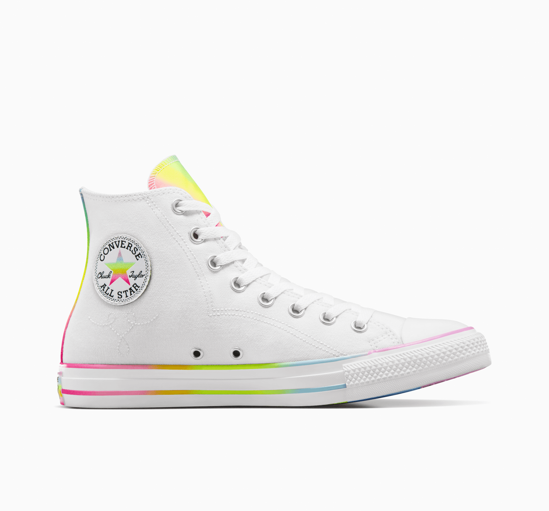 - Duhová nášivka Chuck Taylor na kotníku a poznávací značka All Star z dílny Converse