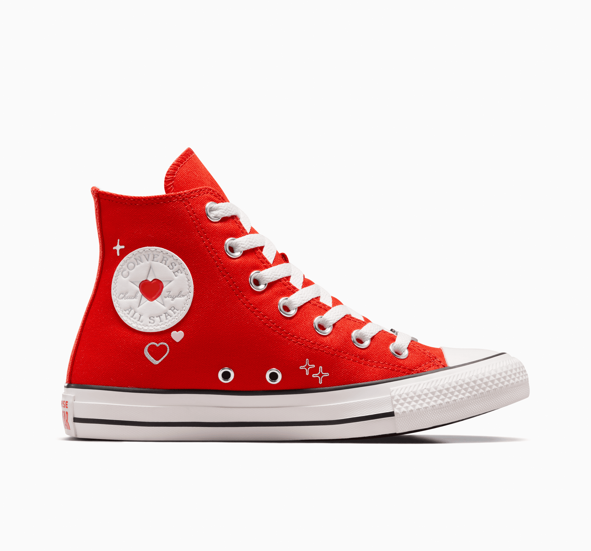 Tyhle klasické tenisky Chuck zdobí srdíčka a metalické prvky, které jsou milostným dopisem časům Y2K. Srdíčko v uprostřed nášivky na kotníku je zárukou neokoukaného stylu, který by záviděl i samotný Amorek.