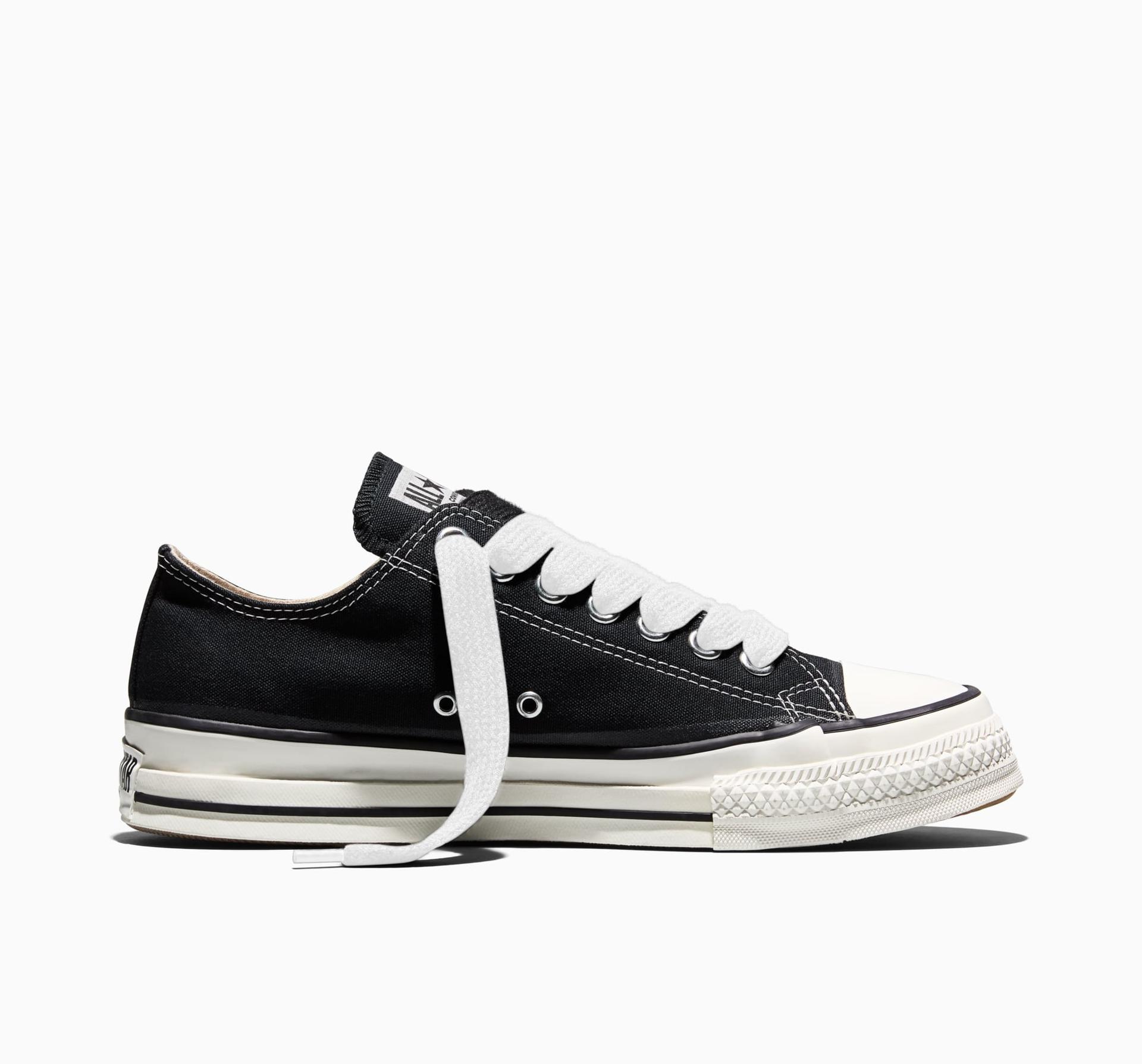 Symbol kreativity a nezávislosti, Chuck Taylor Throwback porušuje pravidla uniformity ve prospěch dekonstruktivního vzhledu. Záměrně předimenzované a posunuté detaily dodávají jemně subverzivní atmosféru 90. let, kterou jste milovali. Váš původní favorit — záměrně nedokončený.