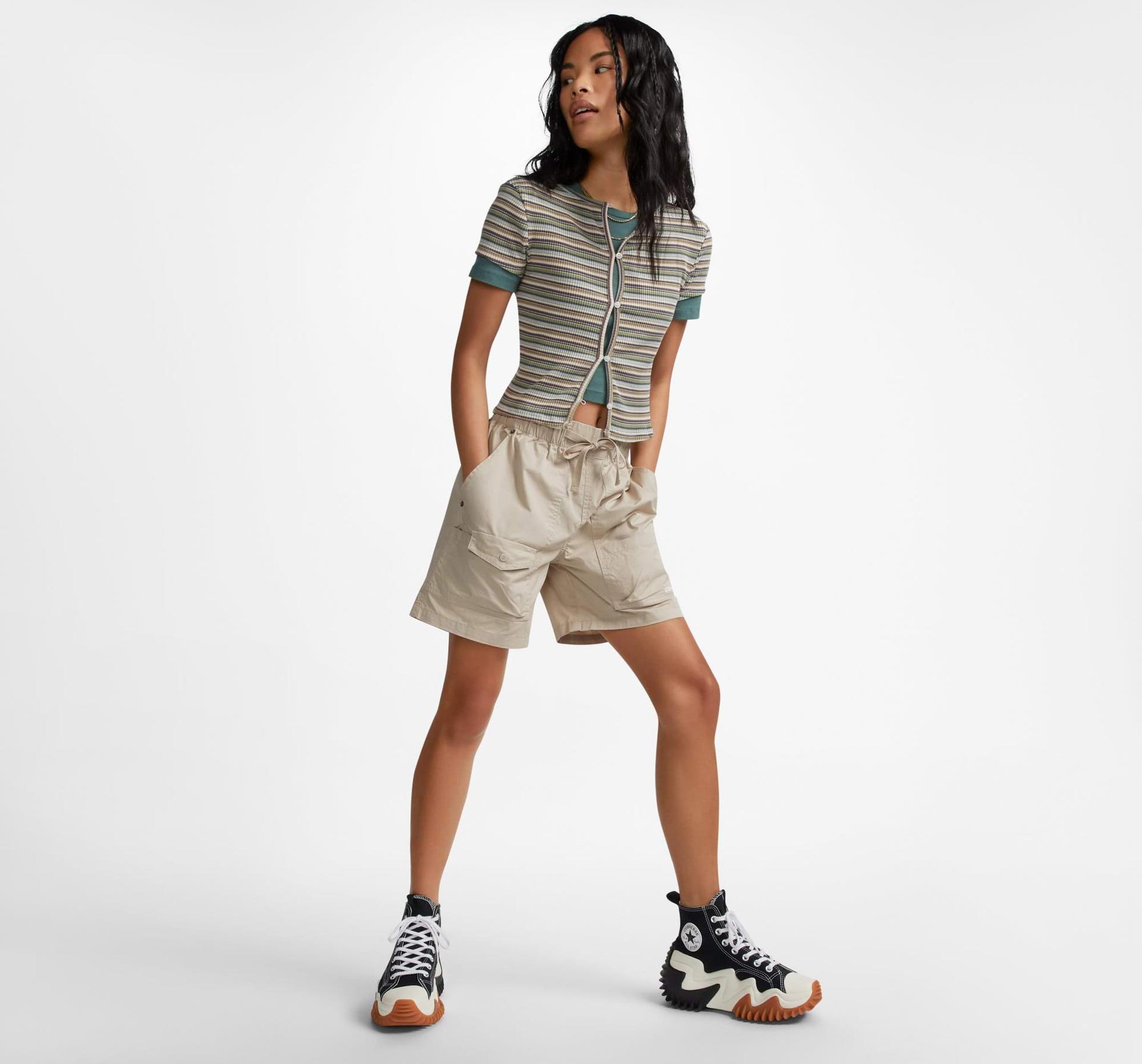 Váš nový základ do teplého počasí. Tyhle šortky jsou vyrobeny z prodyšného bavlněného kepru a mají střih do poloviny stehen, takže je rozhodně musíte mít, abyste se stylově propletli celou sezónou. Nastavitelný pas perfektně padne a přední a zadní kapsy nabízejí rychlé a přehledné místo na věci, které potřebujete s sebou.