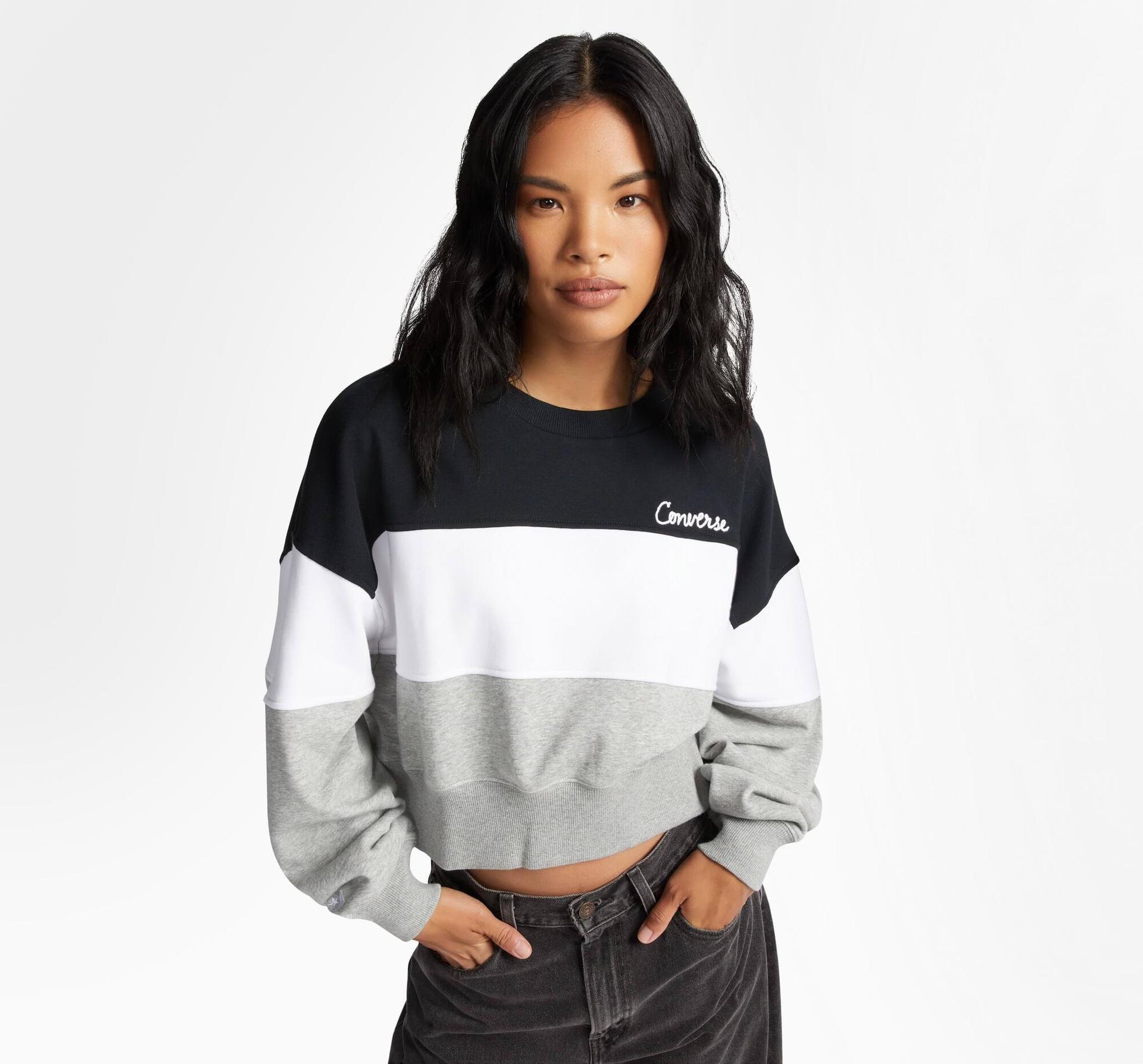 Tahle mikina s kulatým výstřihem a barevnými panely se dokonale hodí na chladné dny. Je ušitá z měkkého středně silného úpletu French Terry, proto je to nezbytný kousek na přechod mezi ročními obdobími. Barevné panely jsou stylové a řemeslné detaily, jako řetízkový steh, vyšívaný nápis značky, jsou jen nenápadnou třešničkou stylu.