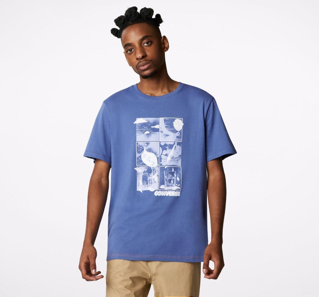 Grafiky Comic znázorňují misi Converse Renew na tomto tričku s klasickým střihem. Zhruba 50 % recyklované bavlny a asi 50 % organické bavlny hostí grafiku ve stylu comic. Z grafiky vyzařují Země, příroda a celkové zdraví, posilňujíce tak ústřední motiv kolekce. Vzhled kompletují krátké rukávy a výstřih ke krku.