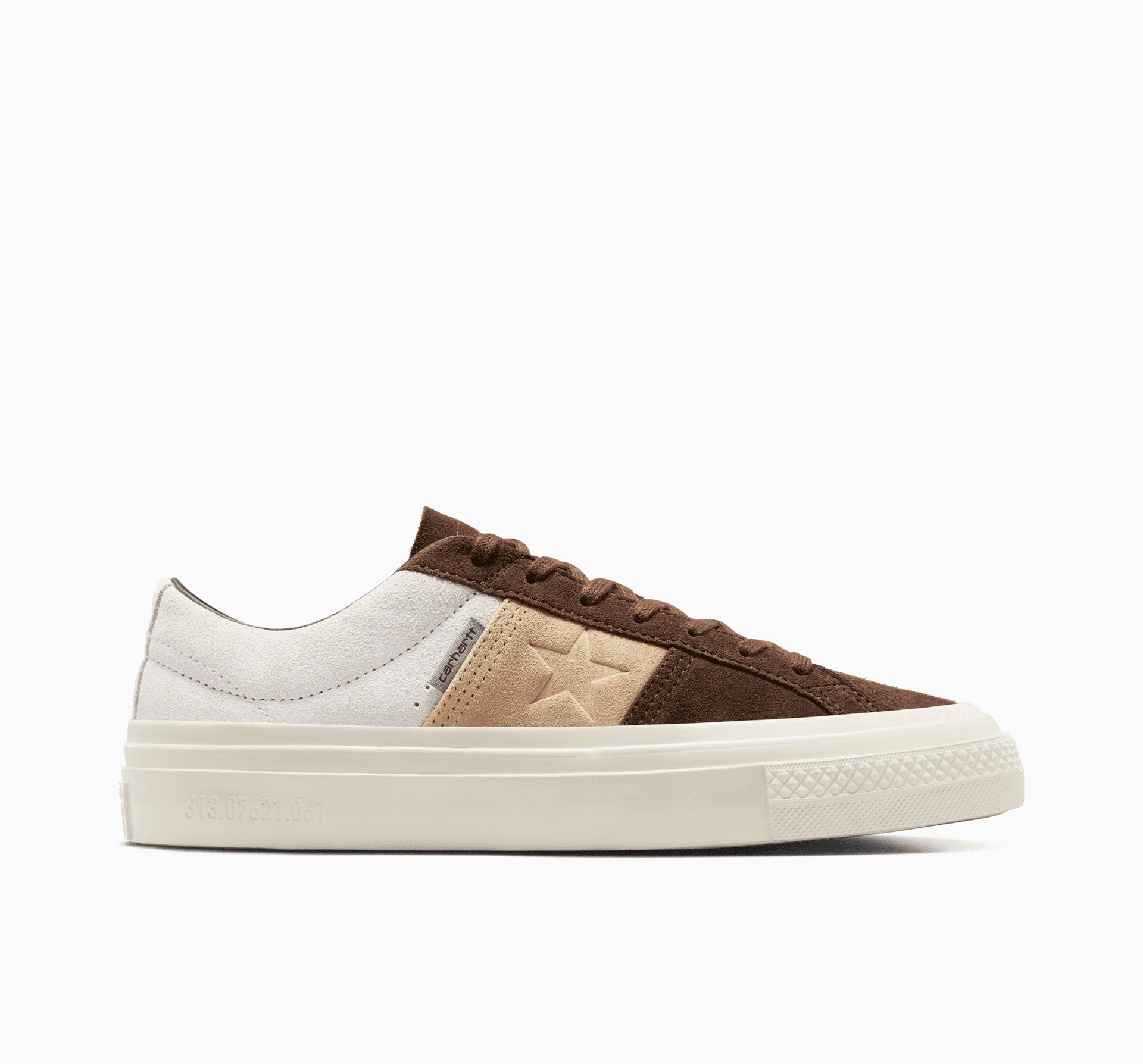 Pocta řemeslu a kultuře, Converse CONS x Carhartt WIP One Star Academy Pro spojuje archívní design a unikátní detaily s charakteristickými barvami a jemnými aplikacemi. Trojité prošívání, upravený design a společné logo přinášejí surovou estetiku do ikonické siluety Chuck Taylor s moderními prvky pro skateboarding. Carhartt WIP One Star Academy Pro má překrytou třípanelovou semišovou konstrukci pro trvanlivost a skryté detaily, které odkazují na jejich kořeny značky. Charakteristický střih navržený pro skateboarding, One Star Academy Pro má elastický pásek na jazyku, CX pěnovou stélku a gumovou podrážku CONS pro přilnavost, citlivost na desce a flick.