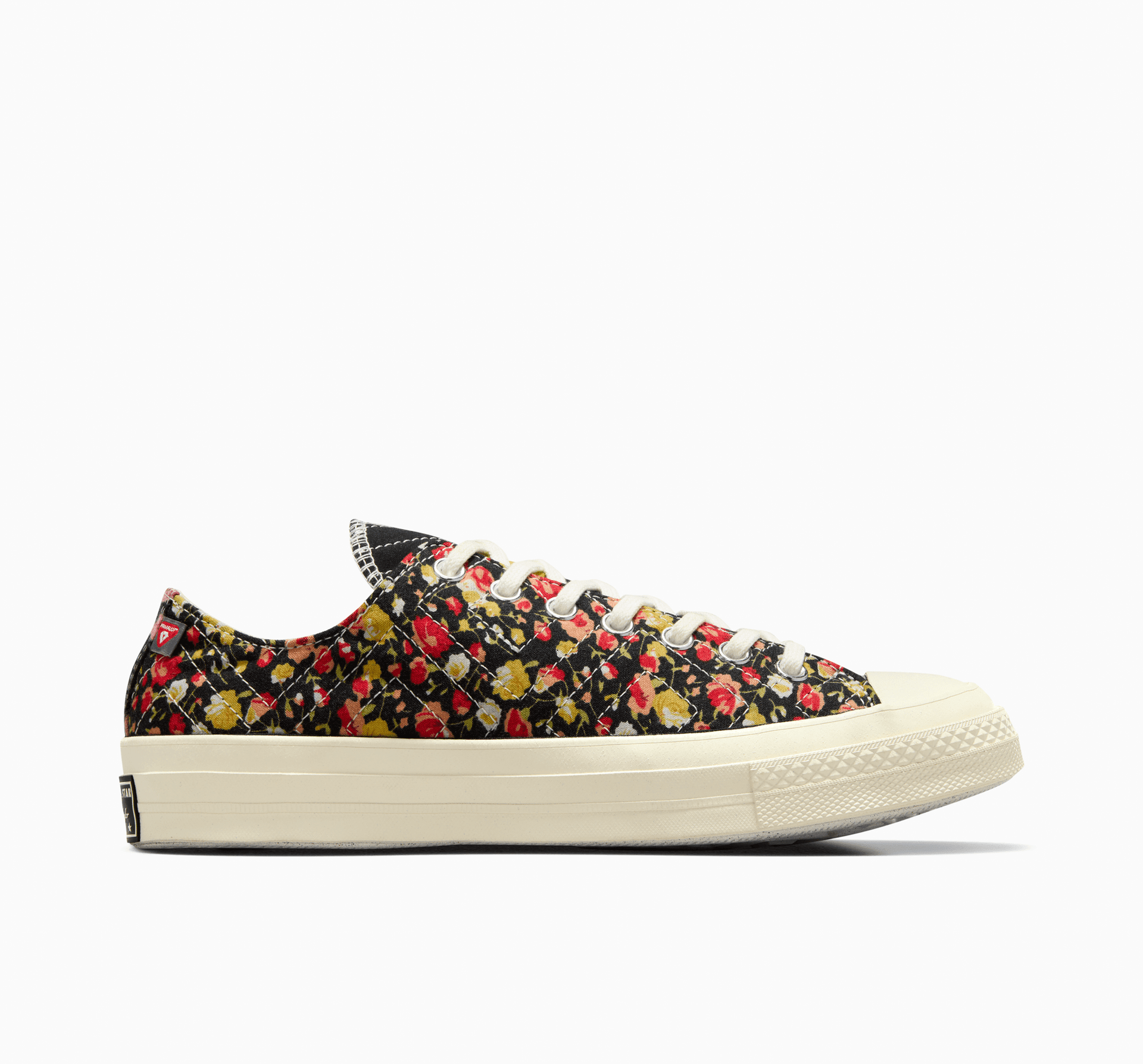 Our latest upcycling exploration with UK-based vintage retailer Beyond Retro utilises pre-loved floral garments to create a new expression of the premium Chuck 70. Because each upcycled garment is unique, no two pairs in this limited-edition capsule are exactly alike—with distinct variation in hues and patterns.