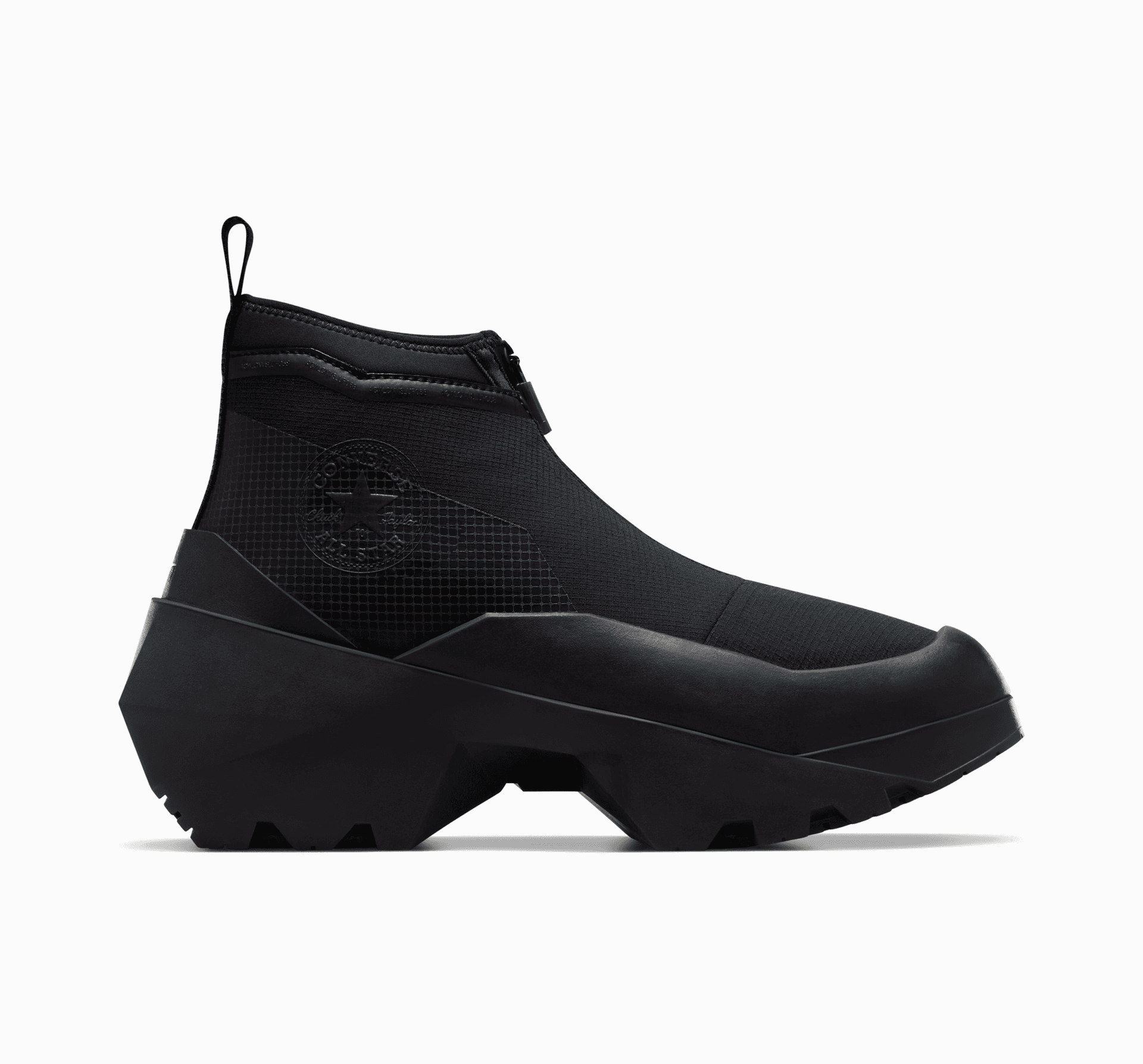 Boty z budoucnosti. Připravené na zimu. Originální kreace Converse x A-COLD-WALL* je inovativní kombinací funkční využitelnosti a progresivního stylu. Odvážný a zcela jedinečný design bot kombinuje inovativní podvratnost se sezónní praktičností. Futuristický design s pružným svrškem, ochranným zipem a zvýšenou podrážkou kombinuje ochranu před přírodními živly a snadné nošení s avantgardním stylem.
