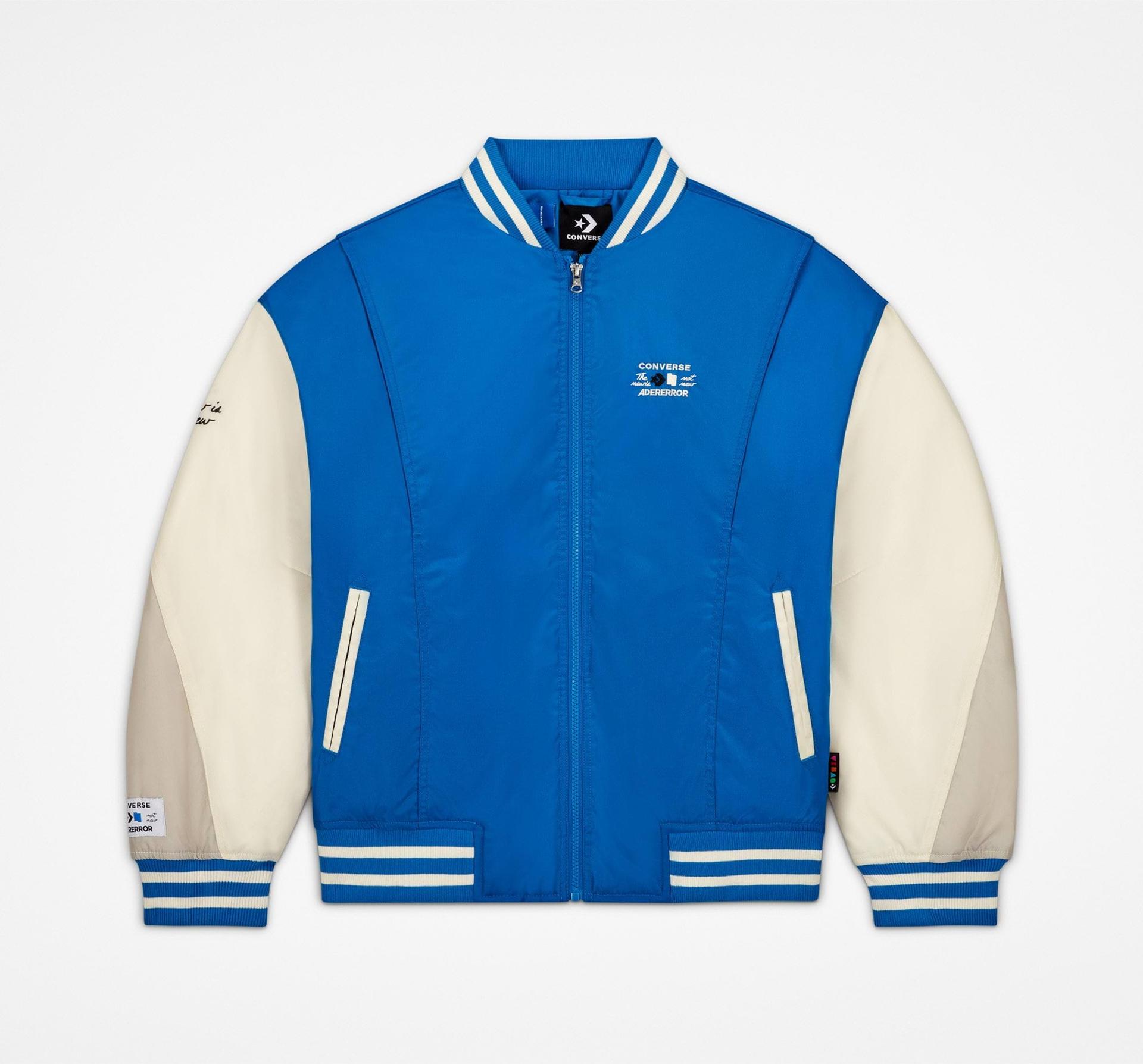 inspired by the old, including this classic blue and white varsity jacket