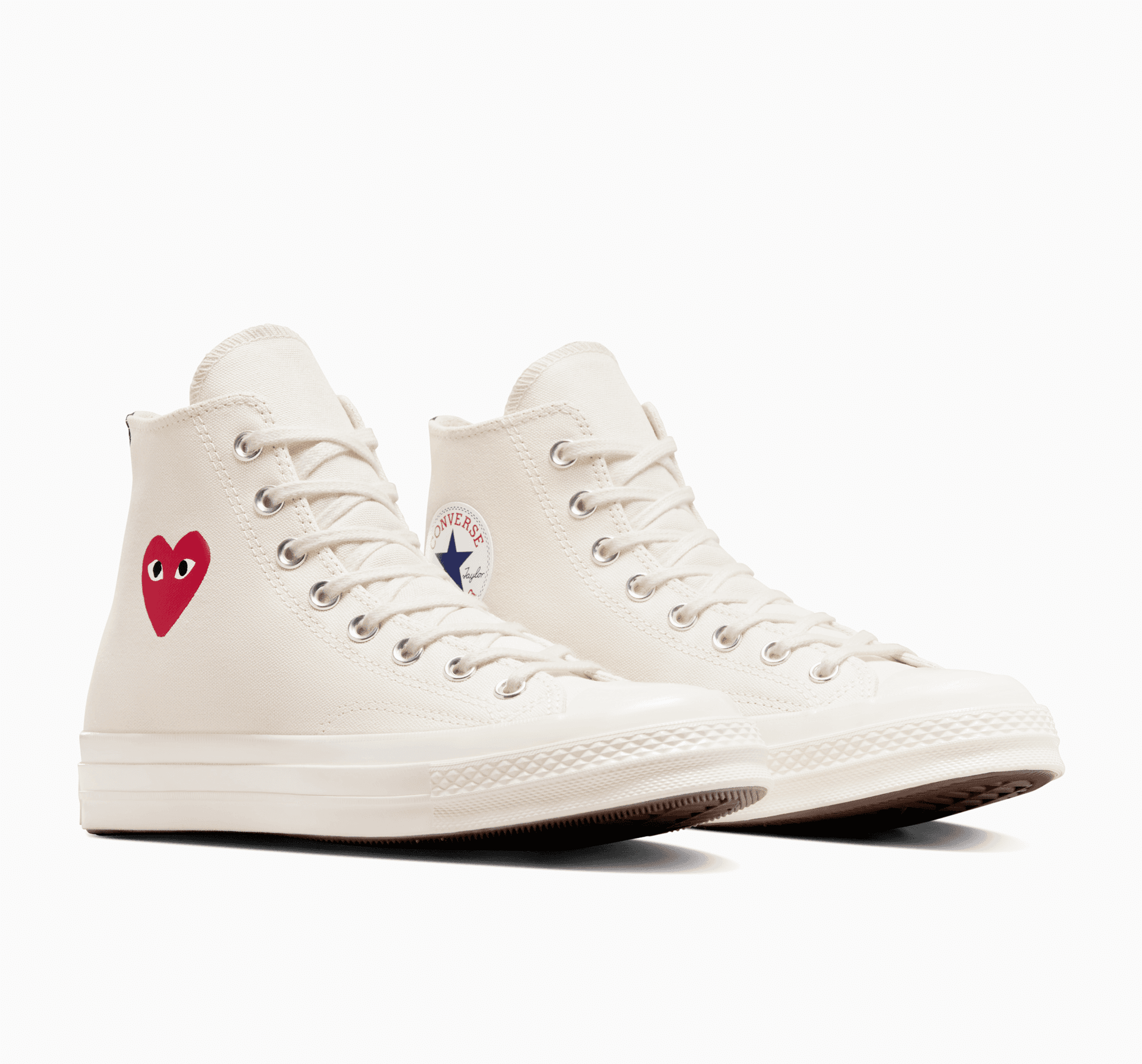 Jedno srdce, kterým to všechno začalo: Naše ikonické partnerství s PLAY Comme des Garçons se vrací s ódou na OG Chucky, které partnerství v roce 2009 odstartovaly. Na ikonickém modelu Chuck 70 je na plátně použito původní logo jediného srdce, přičemž klasické detaily Converse zůstaly nedotčeny. Mimořádný dojem, pouze jedním srdcem.
