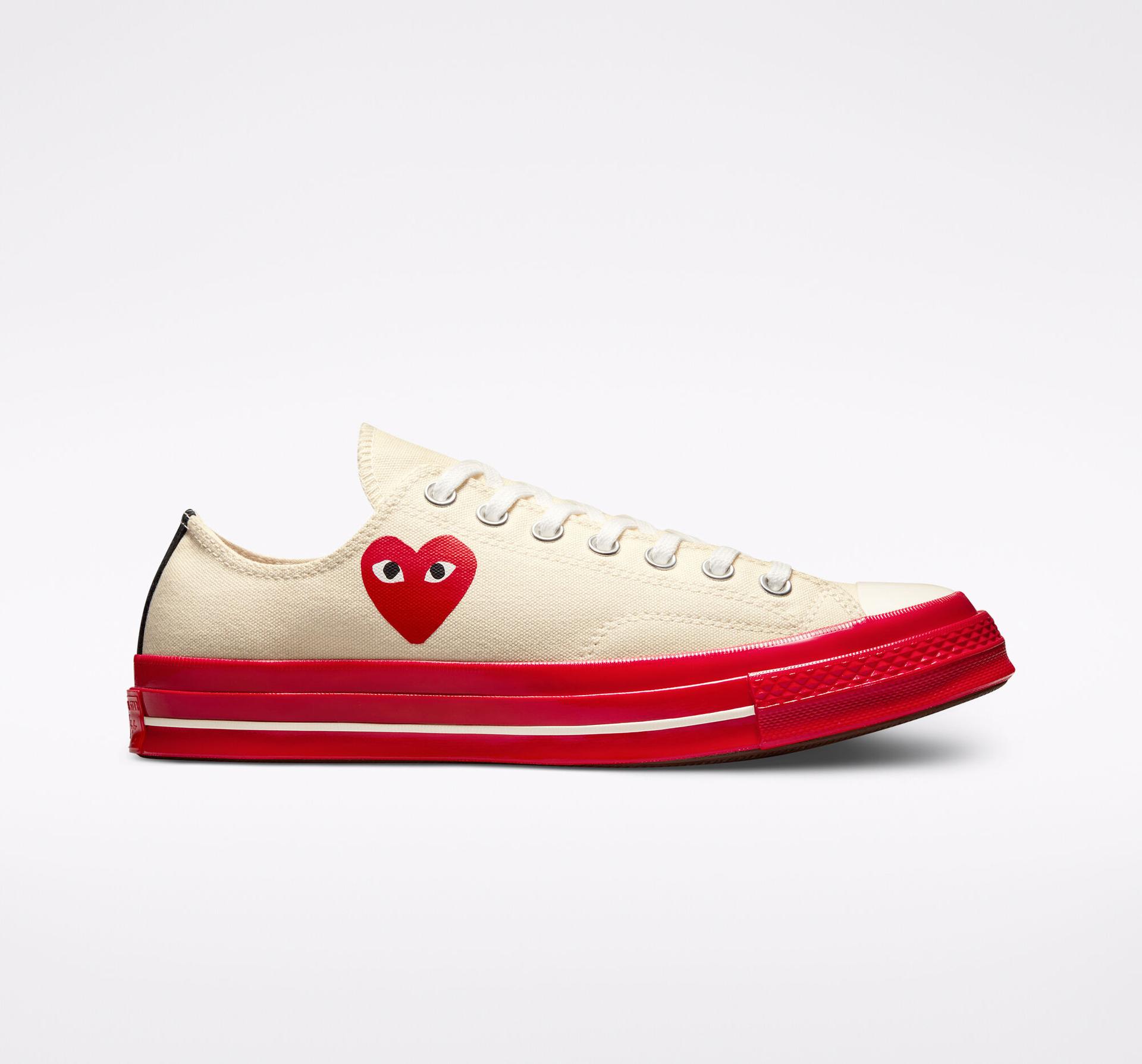 After 12 years of an iconic partnership, we’re celebrating the young creatives who push the boundaries of culture through art, music and skateboarding. Featuring a first-ever red foxing and odes to collaboration’s heritage, this bold new design is made for those who follow their heart – and their own footsteps. The Converse x CDG PLAY legacy continues. A new street icon is born.