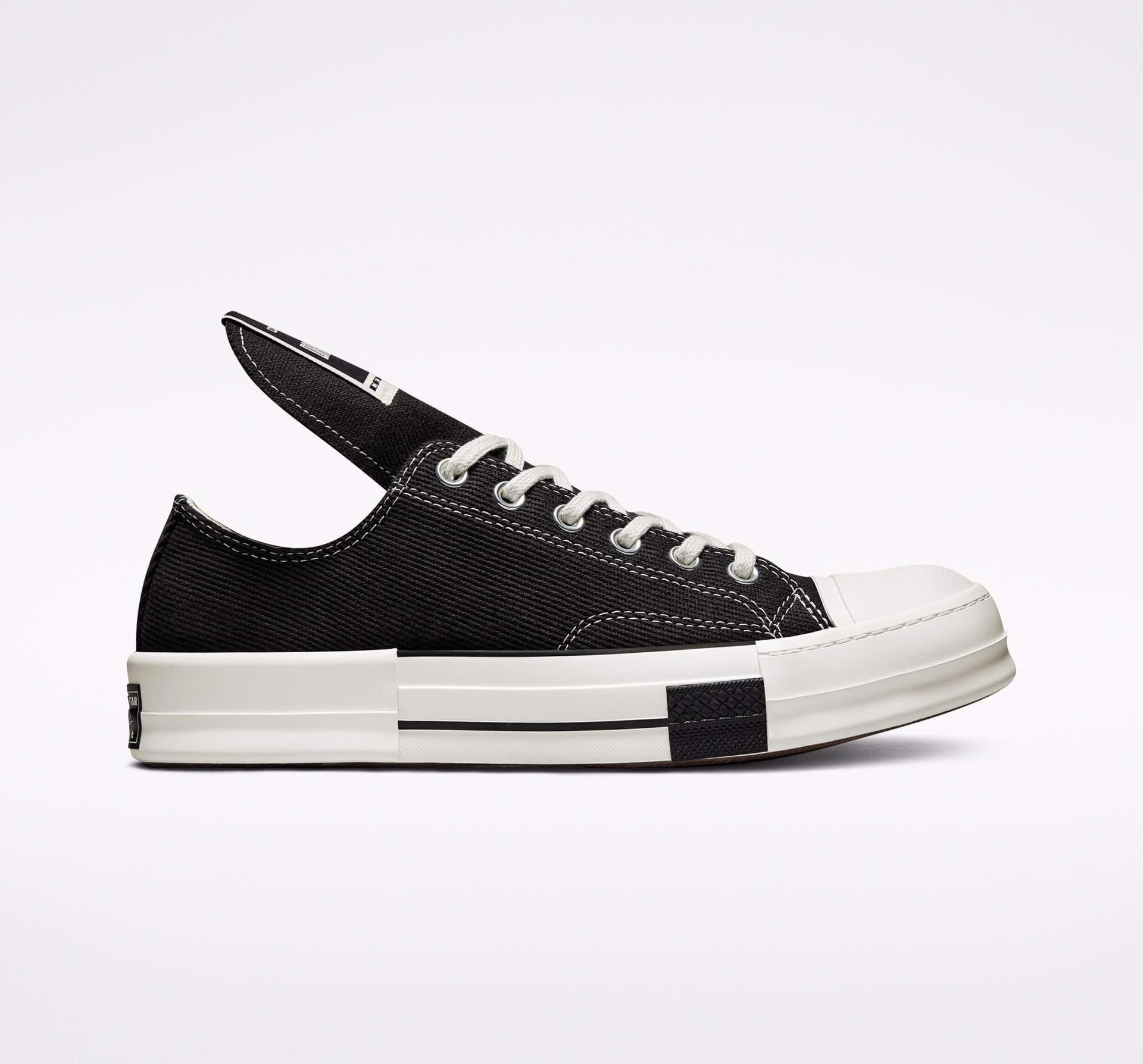 Break from convention with the DRKSTAR Chuck 70, created by Rick Owens. The subversive design both celebrates and distorts the lines of our best-ever silhouette—literally stretching the possibilities with an elongated tongue and signature DRKSHDW toe cap. The cotton-twill upper and refined finishes add polish and couture-like sophistication to the design’s edgy look and exaggerated features. It’s the bold reinvention of a street classic. And a rebellion against the ubiquitous. Rick Owens crafts a Chuck 70 unlike any other.