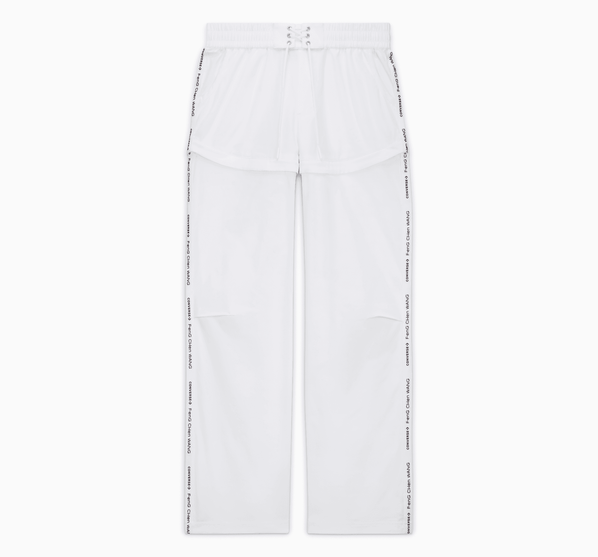 Podvratný sport: Vlivná čínská návrhářka Feng Chen Wang se vrací s novou kolekcí oblečení Converse, v níž reinterpretuje klasické oděvy svým typickým konceptuálním pohledem. Její dekonstruktivní přístup přetváří moderní kousky ve výrazné, jedinečné kousky s odkazem na tenisky Converse. Tato limitovaná edice cargo kalhot 2 v 1 má odepínací nohavice s dvoucestnými zipy, kovová očka, velké kontrastní našité kapsy na bocích a cobranding s potiskem na každé nohavici.