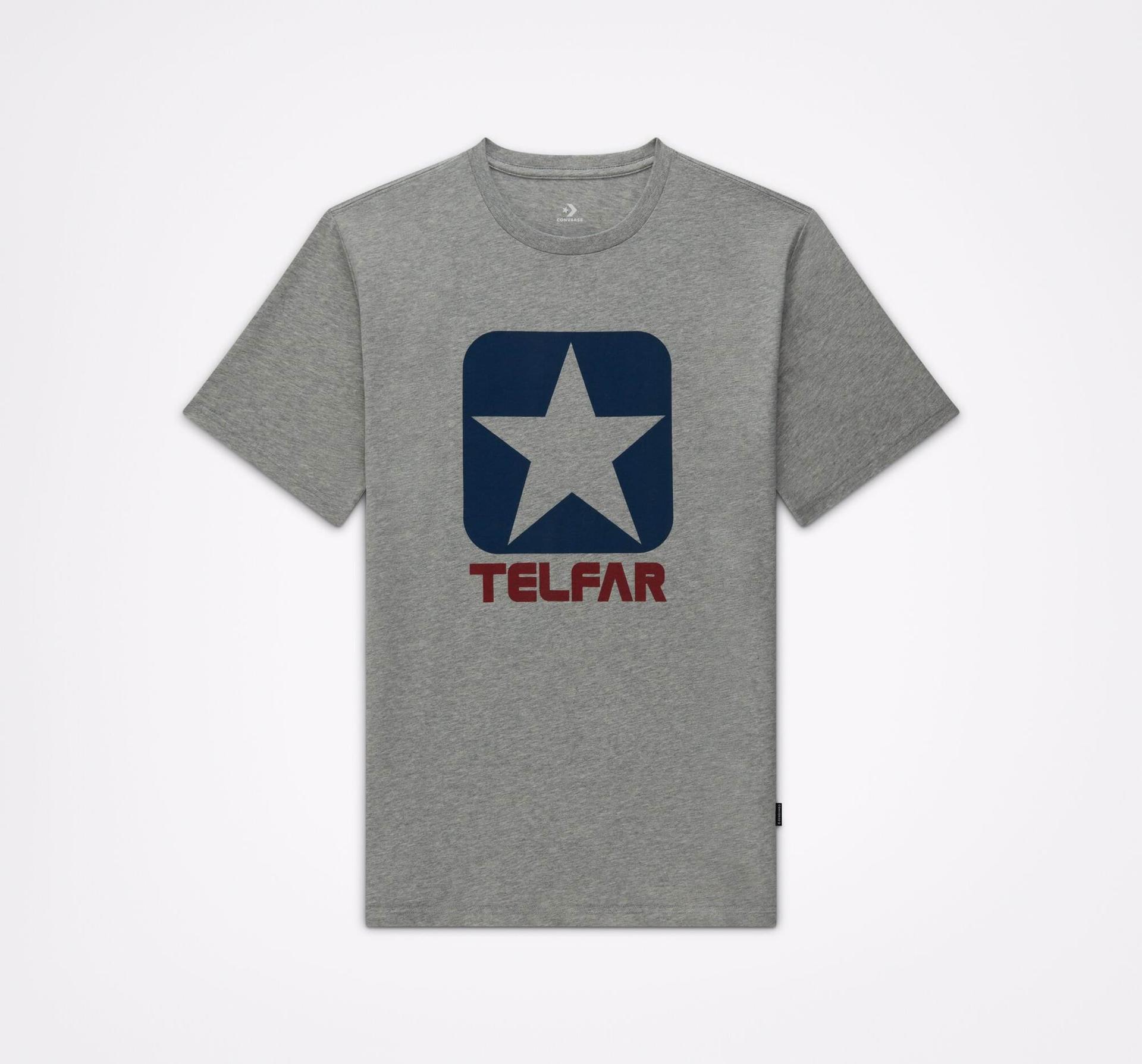 Limitowana koszulka firmy Telfar Clemens z grafiką TELFAR i Converse Box