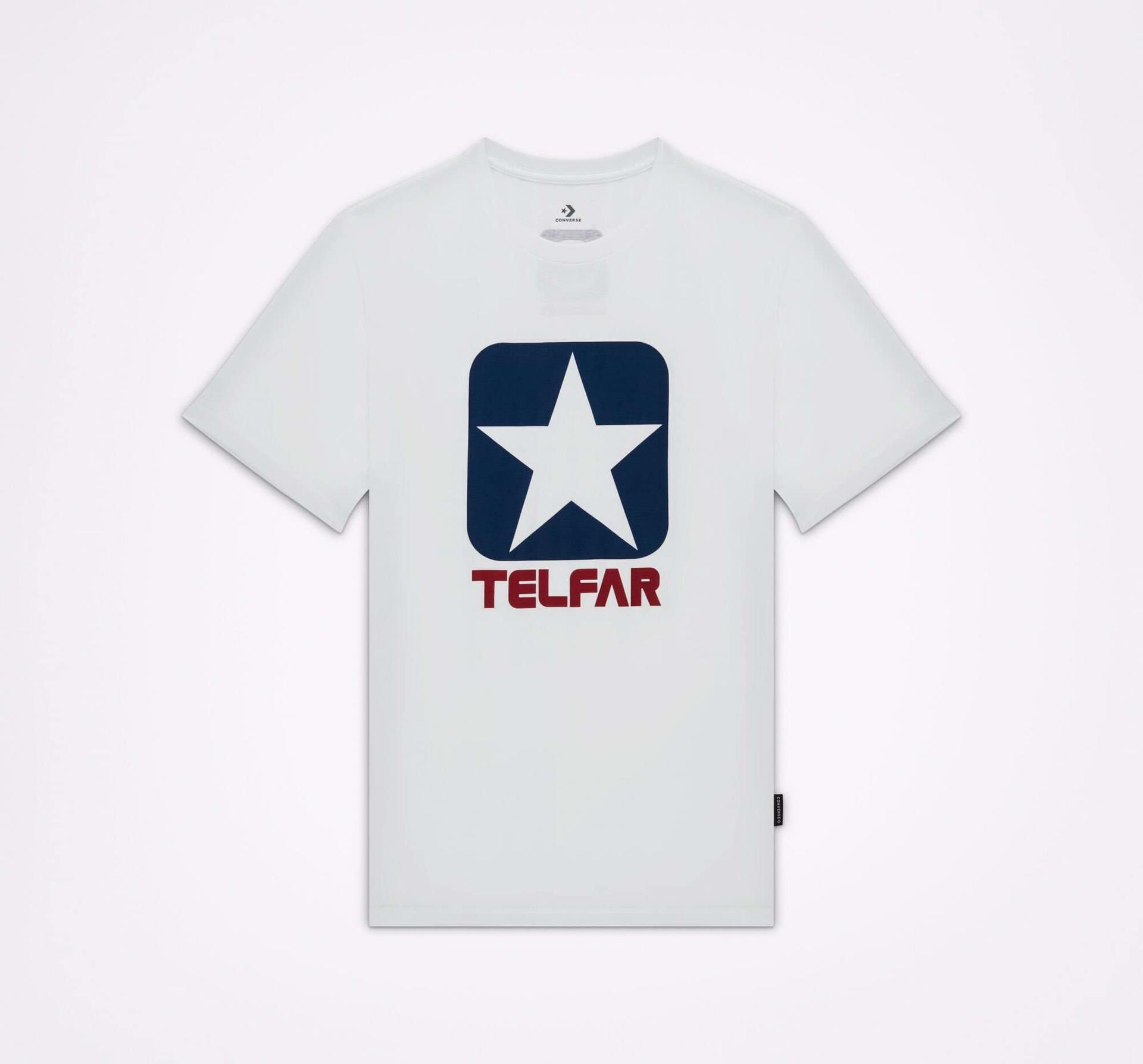 Limitowana koszulka firmy Telfar Clemens z grafiką TELFAR i Converse Box