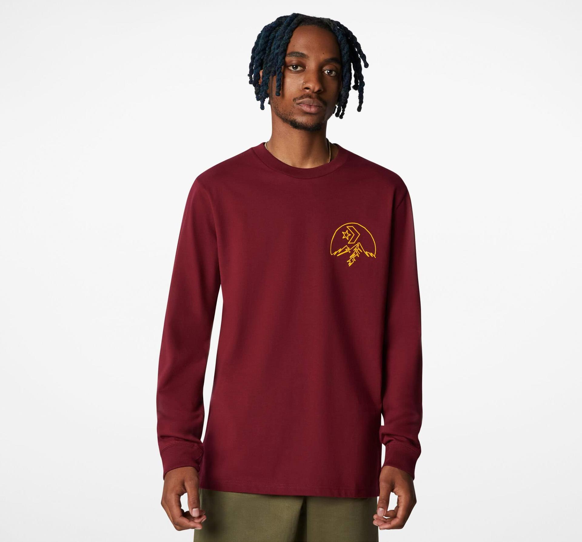 Ať už se budete toulat přírodou, nebo městem, v tomhle tričku z měkkého bavlněného žerzeje vám bude příjemně teplo. Logo a kresba stromů s horami ve výrazných barvách jsou vyšité v řetízkovém stehu.