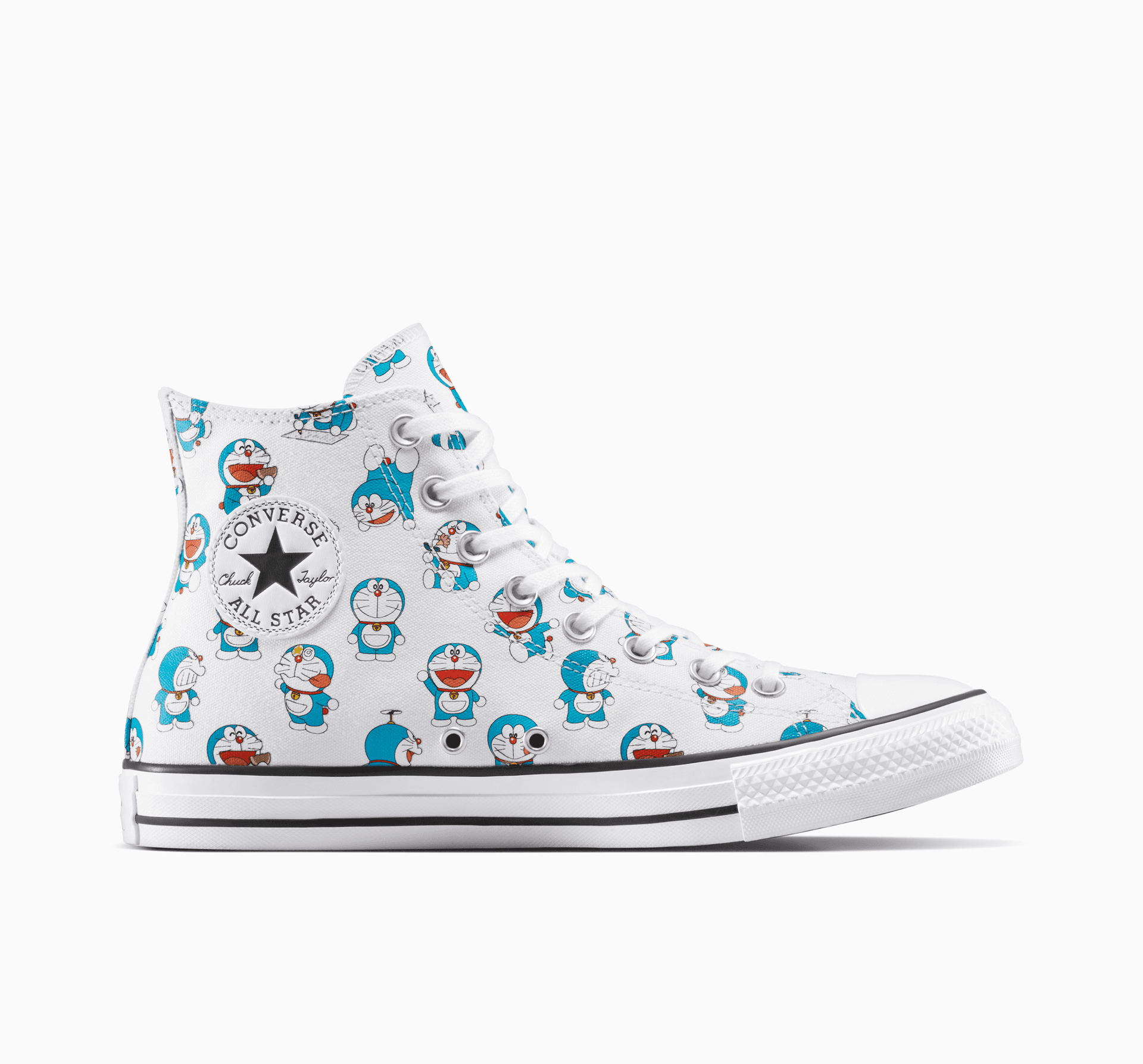 Doraemon Daze! Converse oslavuje oblíbený japonský manga a anime seriál o kočičím robotovi z budoucnosti párem Chuck Taylor All Stars. Design limitované edice obsahuje celoplošný potisk Doraemona s řadou hravých výrazů a tajných udělátek.