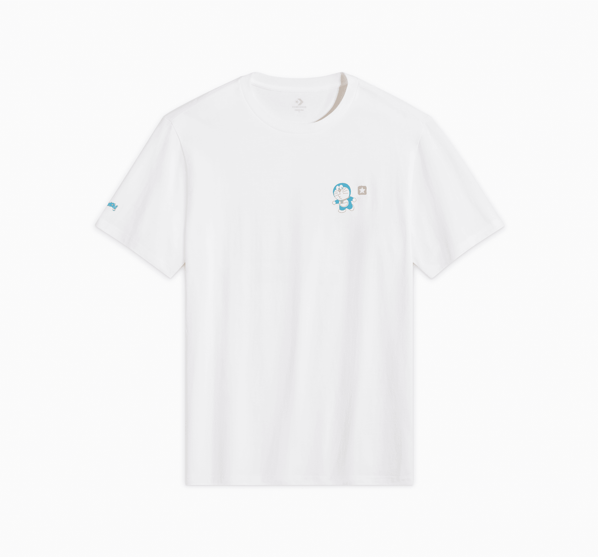 Doraemon Daze! Converse oslavuje oblíbený japonský manga a anime seriál o kočičím robotovi z budoucnosti na tričku z bavlněného žerzeje v limitované edici, které má na přední a zadní straně výraznou grafiku Doraemon a limitovanou grafiku Converse provedenou inkoustem na vodní bázi.