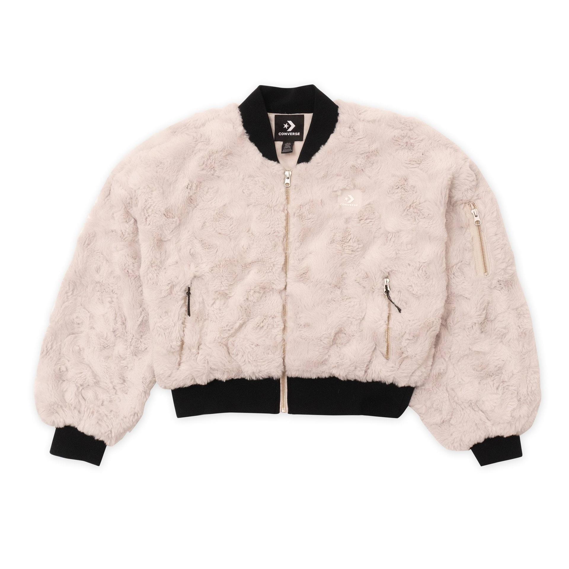 Umělá králičí kožešina, která pokrývá bundu od límce po náplety, je měkká na dotek a lze ji použít jako svrchní vrstvu. Dvě kapsy na zip na bocích a tajná kapsa se zipem na rukávu poskytují bezpečné místo, kam si můžete uložit vše, co potřebujete. Neodmyslitelné prvky bomber bundy, mezi které patří žebrovaný límec a náplety, zakončují střih.