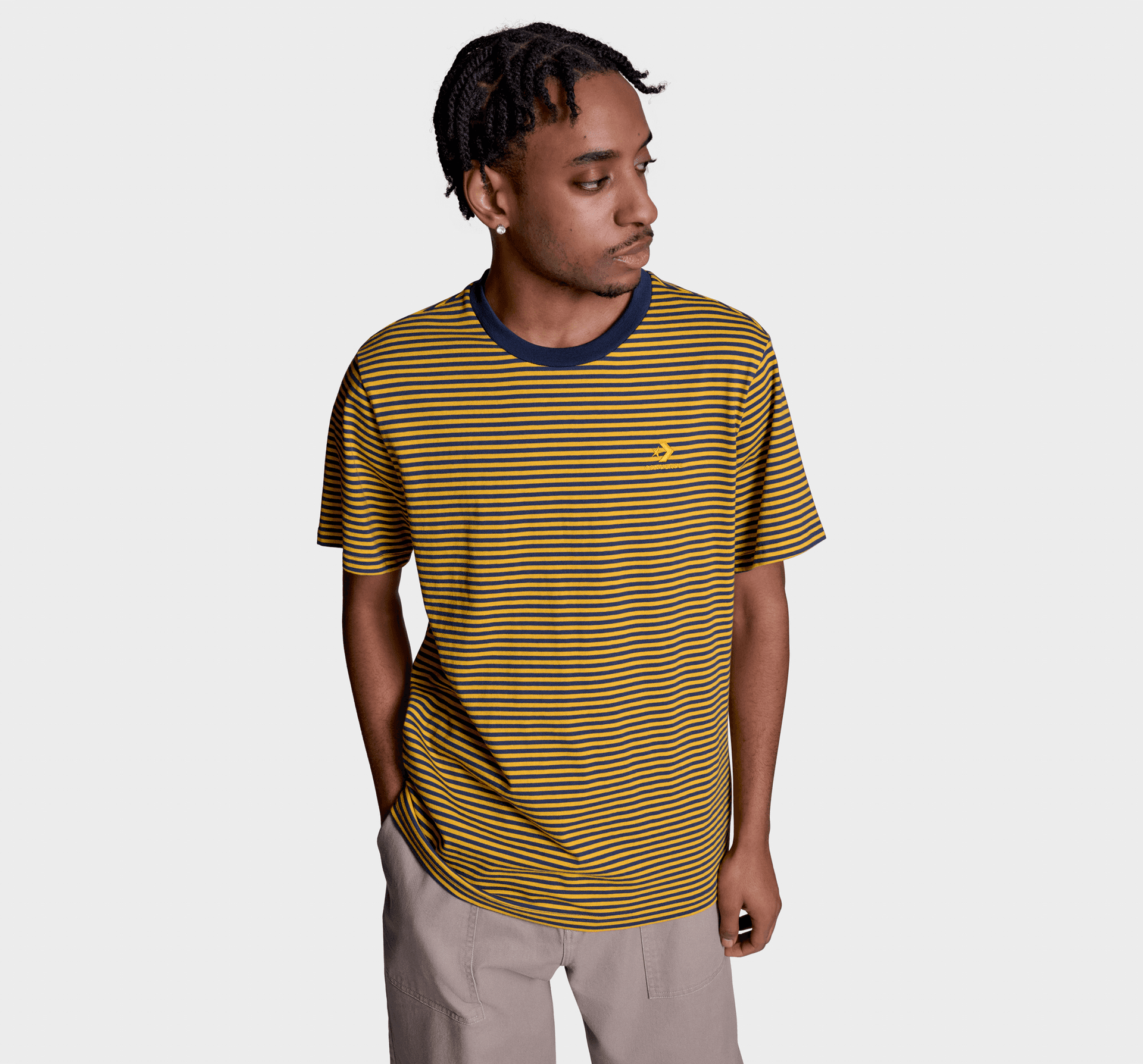 Step out in clean lines with a classic vibe. This striped tee keeps it simple but never boring, with a timeless pattern that does the heavy lifting.