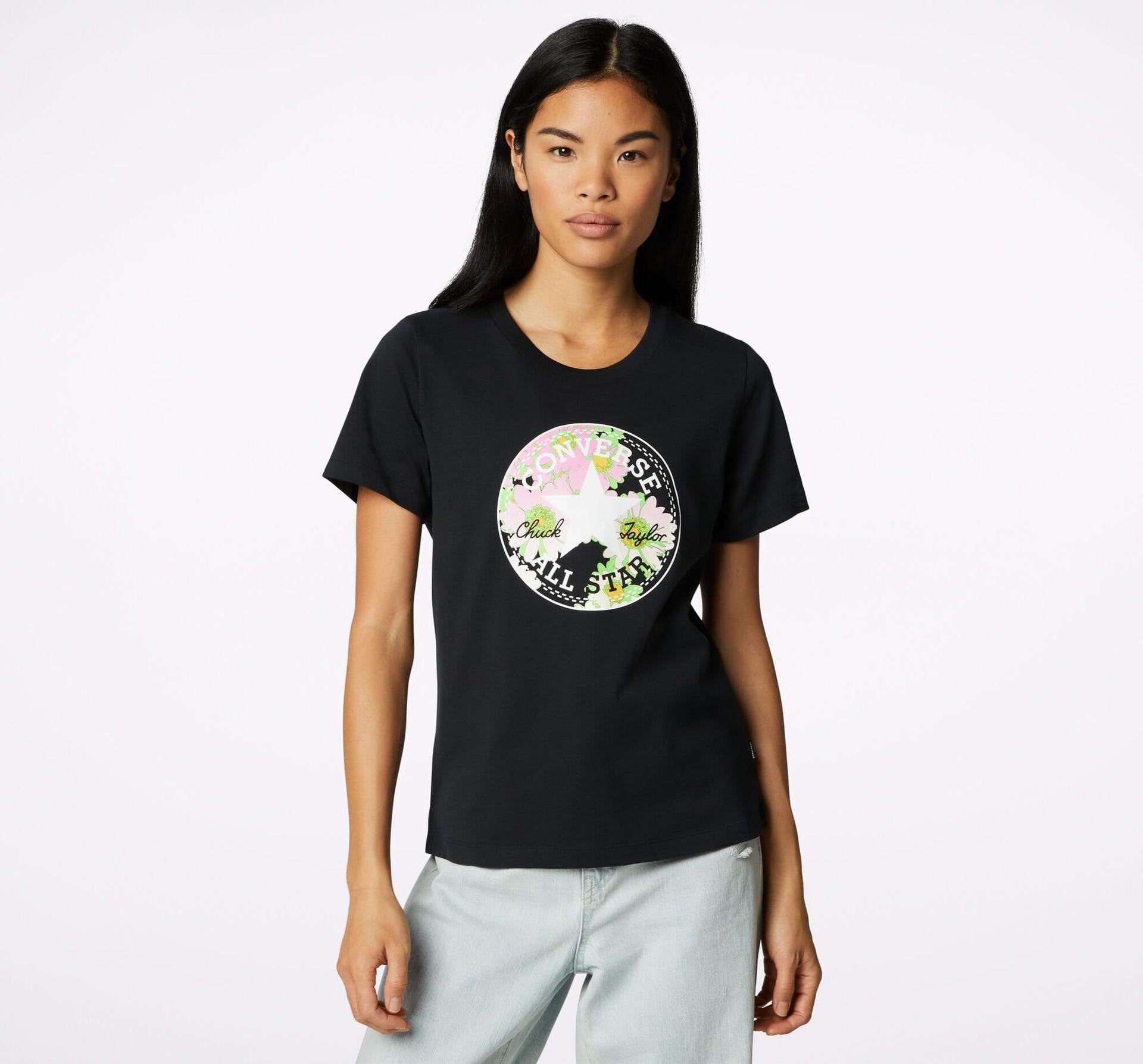 Na tomto tričku připraveném na léto prostupují skrze znak ikonického loga Chuck Taylor All Star čerstvé letní květy. Grafika přináší ležérní sezónní barvy na měkkou bavlnu. V jednoduchém, klasickém střihu s výstřihem ke krku a krátkými rukávy. Stačí přidat slunce.