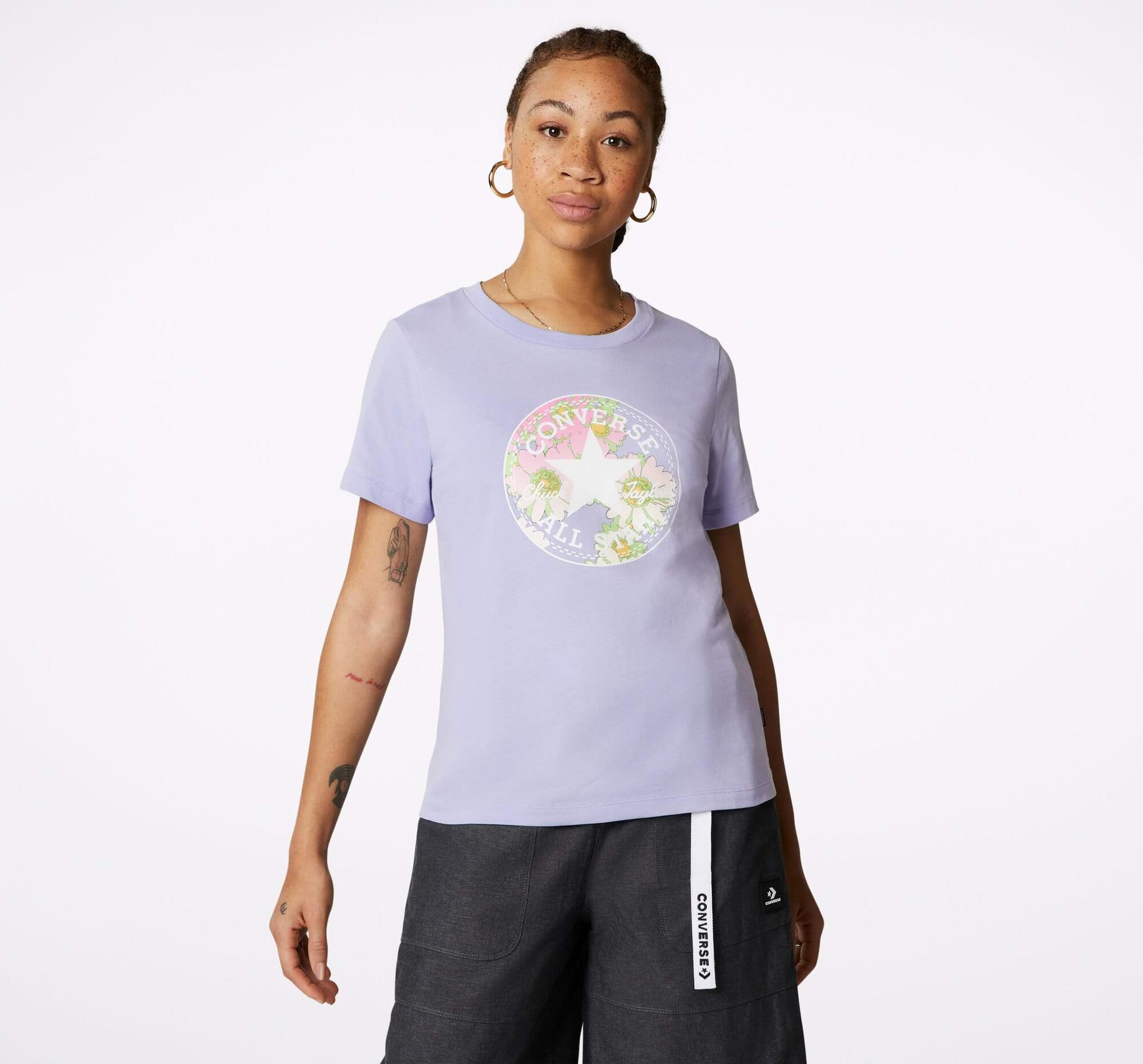 Na tomto tričku připraveném na léto prostupují skrze znak ikonického loga Chuck Taylor All Star čerstvé letní květy. Grafika přináší ležérní sezónní barvy na měkkou bavlnu. V jednoduchém, klasickém střihu s výstřihem ke krku a krátkými rukávy. Stačí přidat slunce.