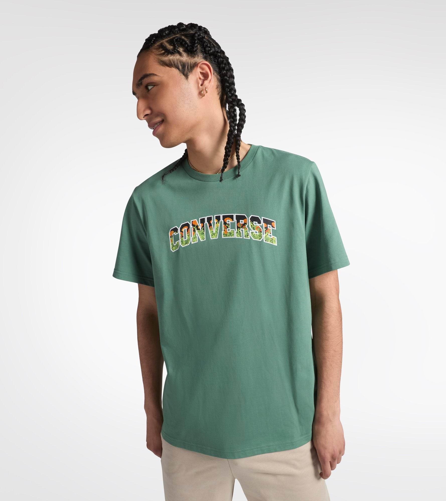 Ikonické logo Converse objímá květinové pole a nabádá k tomu samému.